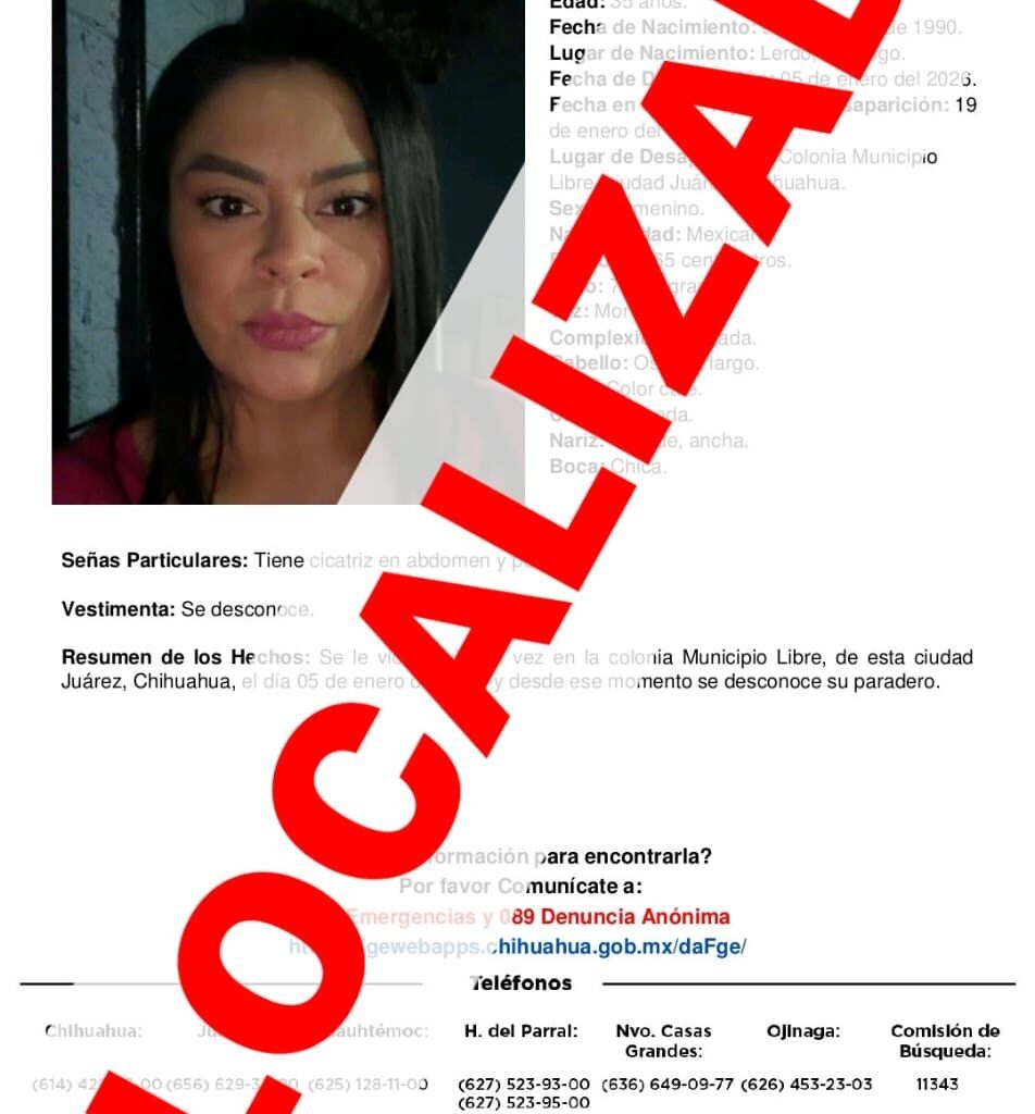 Read MoreLocalizan en Tijuana, sana y salva, a mujer reportada como ausente en Ciudad Juárez