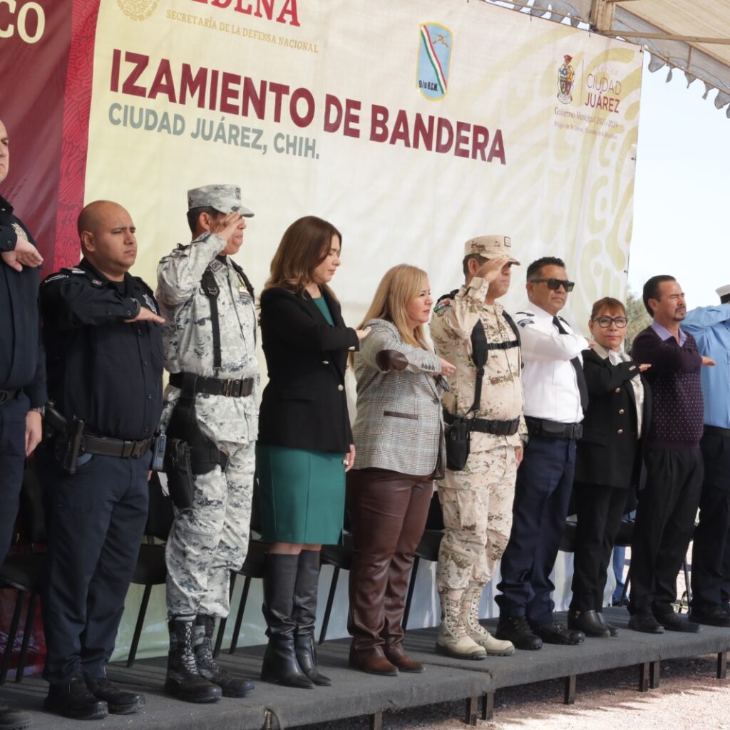 Con la participación de corporaciones de seguridad de los tres órdenes de Gobierno y alumnos de la Escuela Primaria Chihuahua, se llevó a cabo la penúltima ceremonia de izamiento de bandera en la Megabandera, ubicada en la avenida Heroico Colegio Militar en la zona de El Chamizal. Como parte del evento se rindieron los honores a la bandera, se dio…