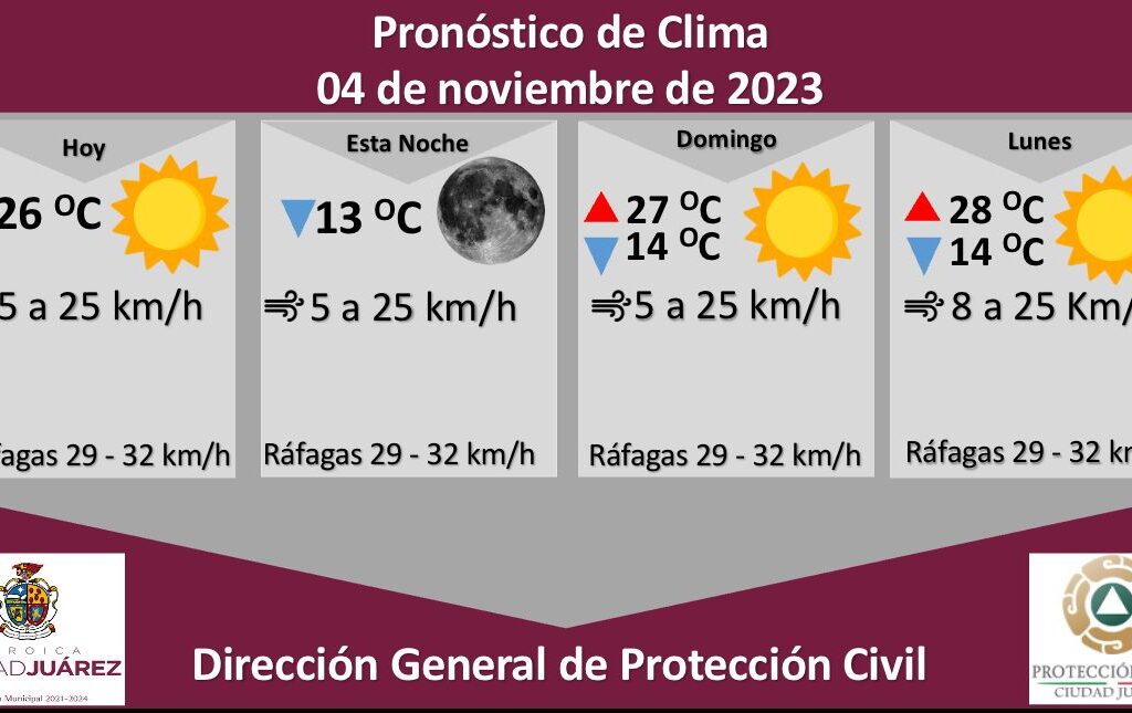 La Dirección General de Protección Civil, con base en informes del Servicio Meteorológico Nacional, pronostica un sábado mayormente soleado con una temperatura máxima de 26 grados Celsius, mientras que la mínima será de 13 °C para esta noche. Roberto Briones Mota, titular de la dependencia, informó que para hoy se esperan fuertes ráfagas de viento que alcanzarán los 32 kilómetros…