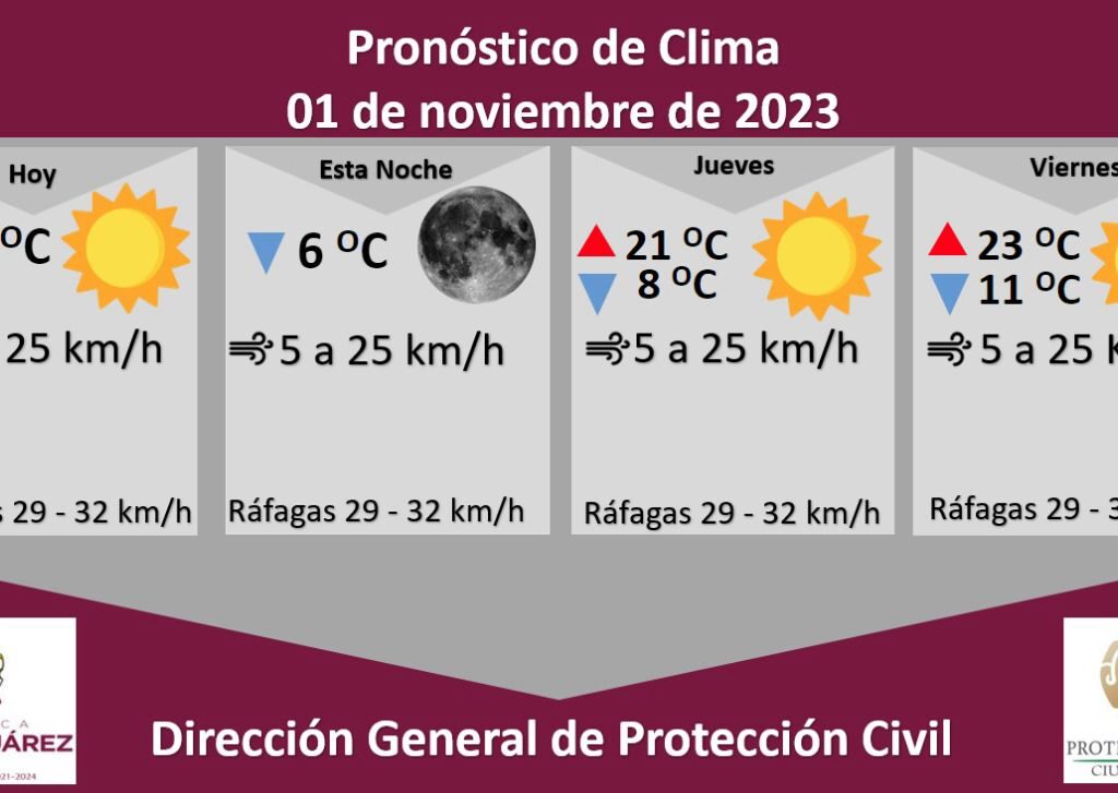 La Dirección General de Protección Civil, con base en informes del Servicio Meteorológico Nacional, pronostica un miércoles soleado con una temperatura máxima de 17 grados Celsius, mientras que la mínima será de 6 °C para esta noche. Roberto Briones Mota, titular de la dependencia, informó que para hoy se esperan ráfagas de viento de hasta 32 kilómetros por hora, en…