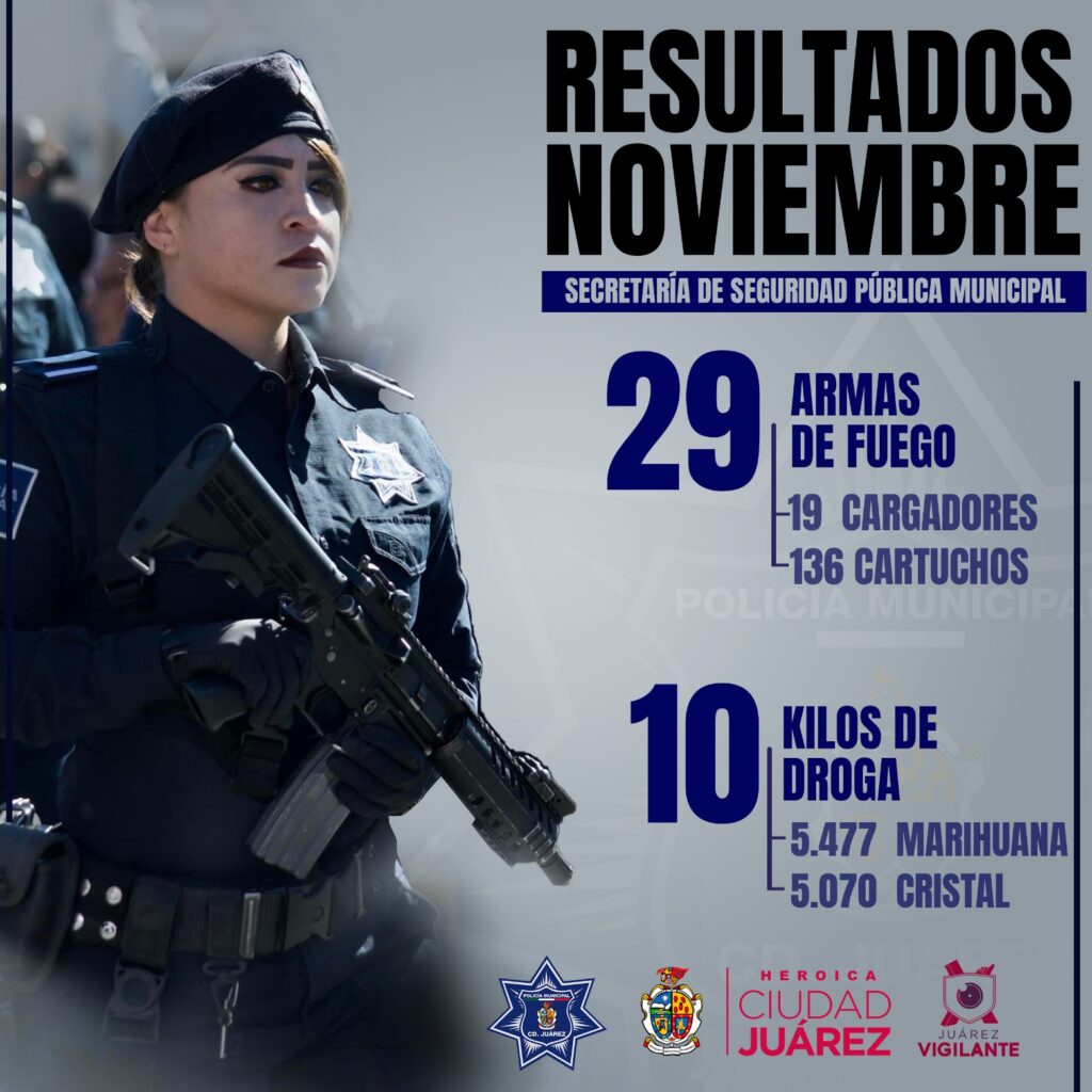 A 04 de diciembre de 2023.- La Secretaría de Seguridad Pública Municipal da a conocer los resultados obtenidos a través de las acciones y estrategias para la prevención del delito durante el mes de noviembre del presente año. Se aseguraron un total de 29 armas de fuego de diversos calibres, además se decomisaron 136 cartuchos útiles de diferentes calibres y…