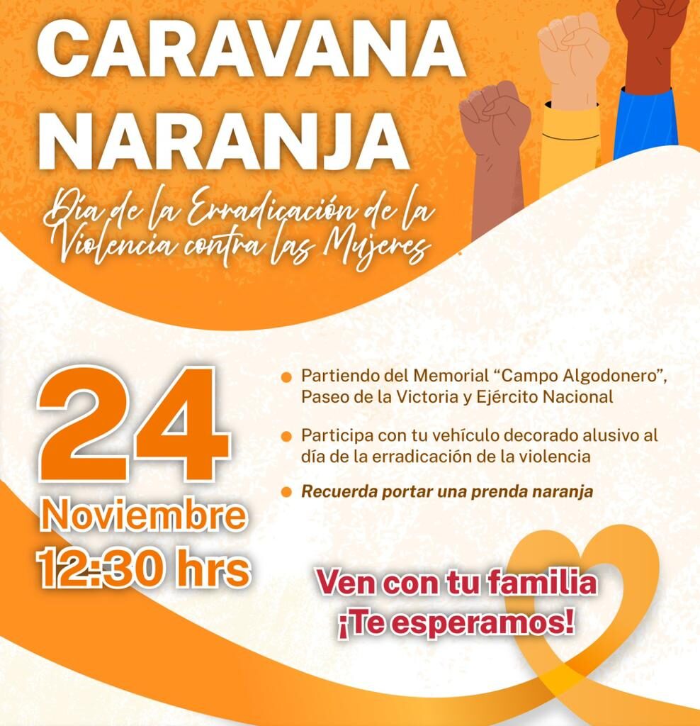 • La invitación es abierta para todo el que deseé sumarse, solo debe decorar su vehículo con motivos en color naranja Para conmemorar el Día Internacional para la Eliminación de la Violencia contra las Mujeres, el Centro de Justicia “Marisela Escobedo Ortiz”, llevará a cabo una caravana naranja en Ciudad Juárez, a fin de concientizar sobre las acciones que se…