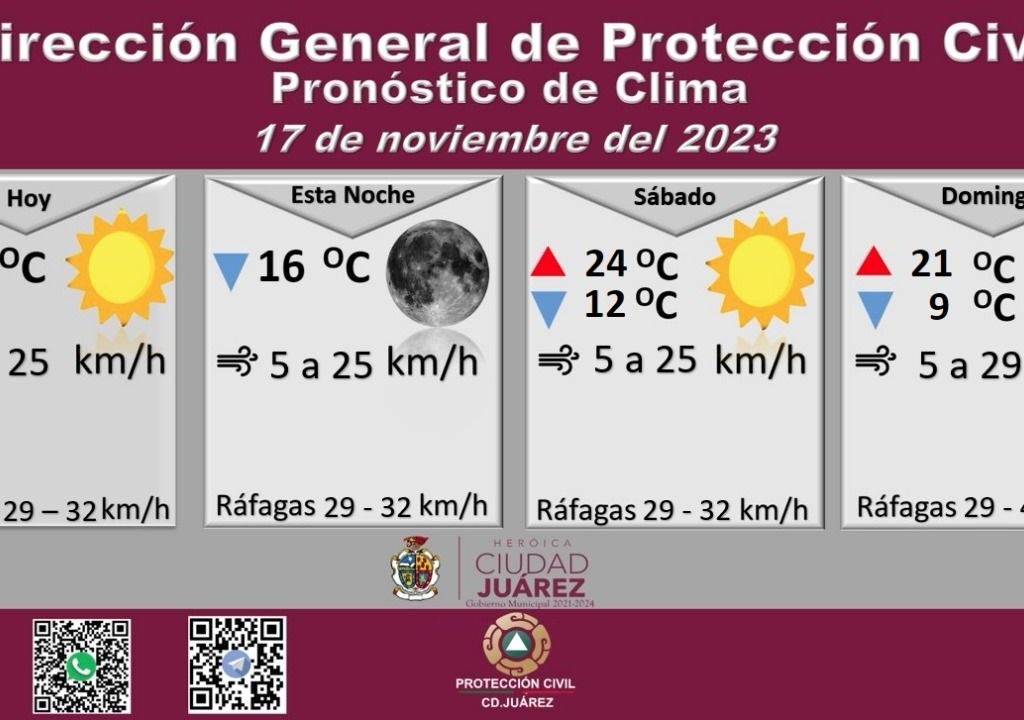 La Dirección General de Protección Civil, con base en informes del Servicio Meteorológico Nacional, pronostica un viernes parcialmente nublado con una temperatura máxima de 23 grados Celsius, mientras que la mínima será de 16 °C para esta noche. Roberto Briones Mota, titular de la dependencia, informó que para hoy se esperan ráfagas de viento que alcanzarán los 32 kilómetros por…