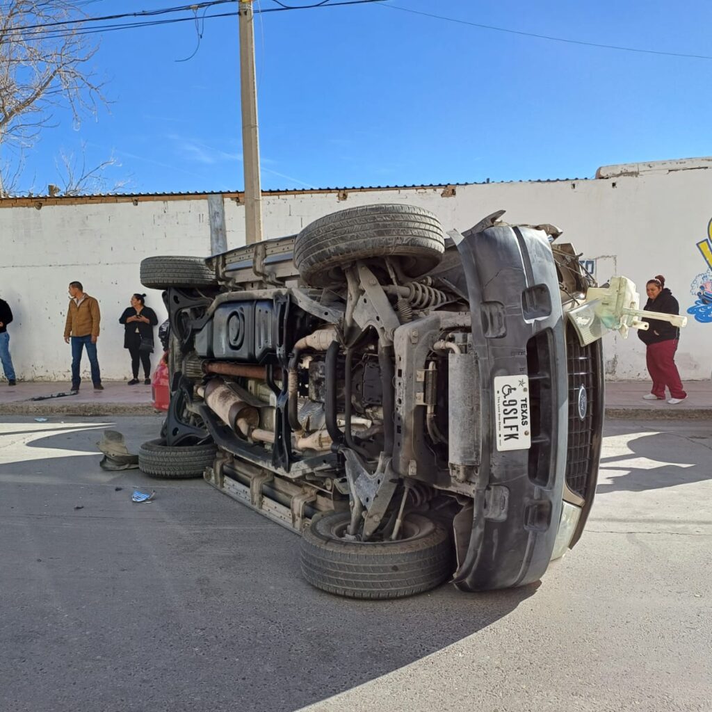 Se dijo que la Explorer acababa de cruzar a Juárez por el puente de la Lerdo. El conductor iba a exceso de velocidad y pierde el control en la Abrahám González. Choca una Expedition, un Nissan Versa, un Jeep, una Ram, un Honda que estaban estacionados y luego se voltea. Afortunadamente no hubo personas lesionadas en el percance vial.
