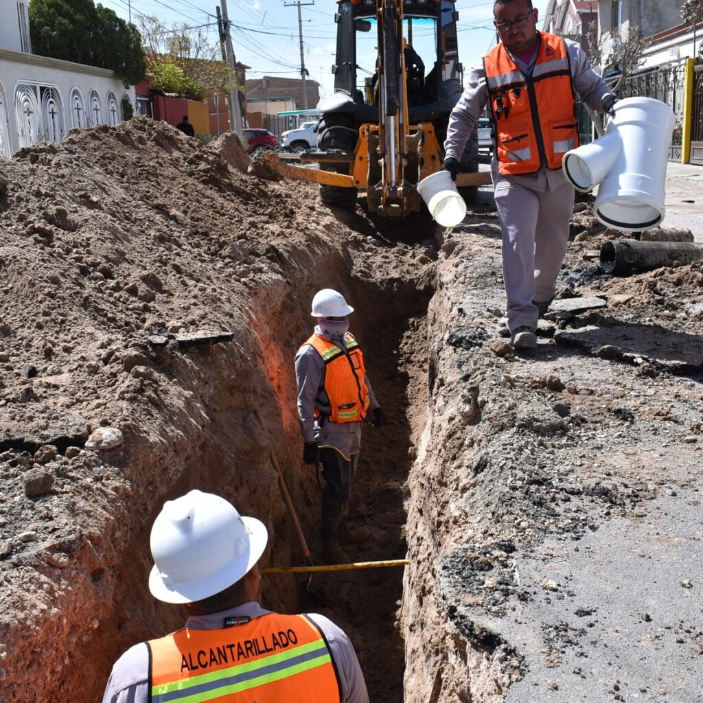 La J+ realiza el reemplazo de tubería de alcantarillado, con la finalidad de preservar la salud de los residentes de la colonia Fronteriza, debido a que la existente ya había terminado su tiempo de vida útil. En total son 50 metros de conducto hidráulico de 8 pulgadas de diámetro los que se colocan sobre la calle Plata cruce con León…
