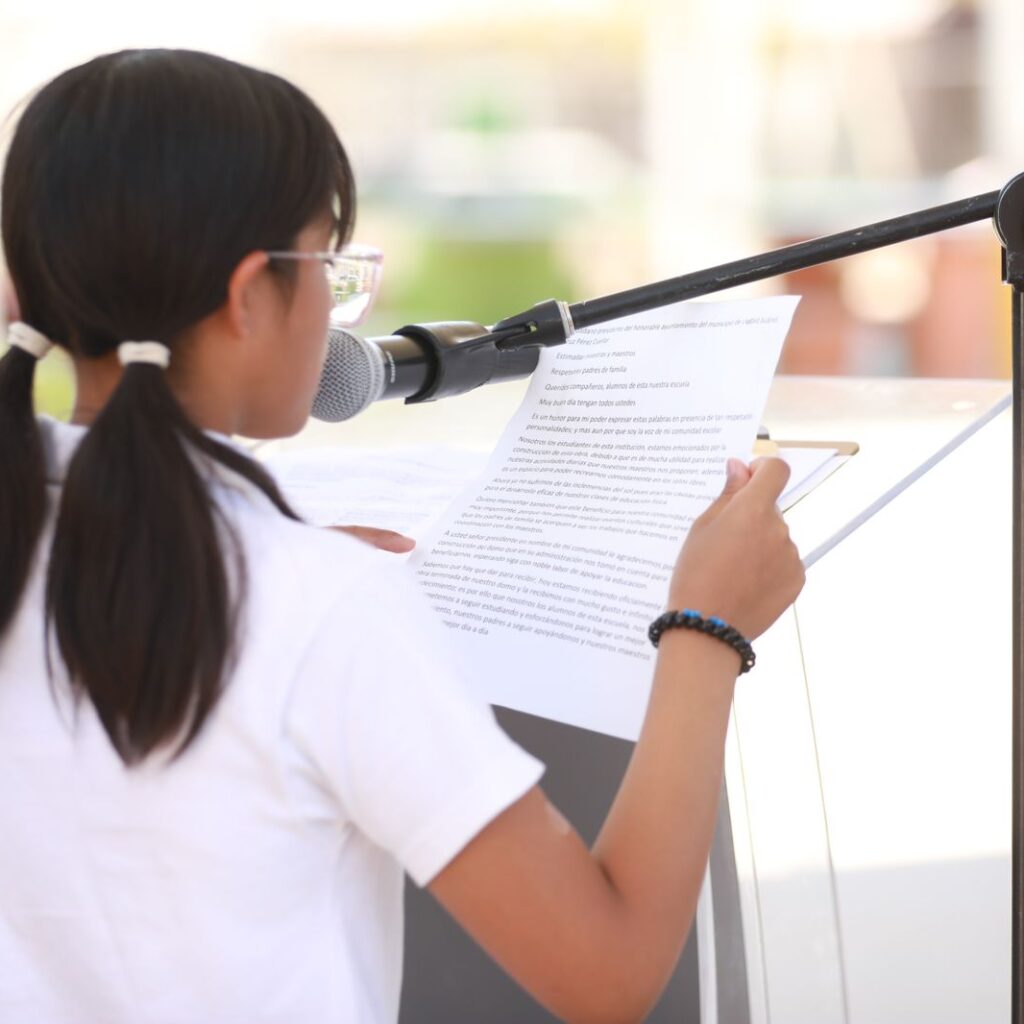 Estudiantes de la primaria José Santos agradeció al Presidente Municipal, Cruz Pérez Cuéllar, la instalación de un domo en su plantel. A nombre de los estudiantes, el niño Aziel agradeció al alcalde por la construcción de la estructura metálica, ya que el domo les permitirá protegerse del intenso sol mientras realizan deportes, actividades cívicas y culturales. Dijo que este apoyo…
