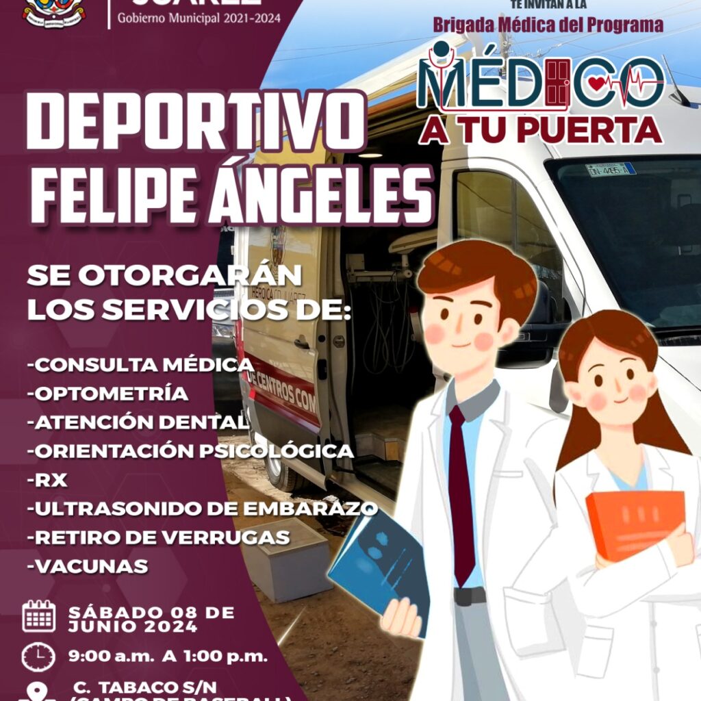 La Dirección General de Centros Comunitarios invita a los residentes de la colonia Felipe Ángeles y áreas circunvecinas a la Brigada Médica del Programa Médico a tu Puerta. El titular de la dependencia, Jesús Manuel García Reyes, indicó que los servicios se otorgarán sin costo alguno este sábado 8 de junio de 9:00 a 13:00 horas, en el campo de…