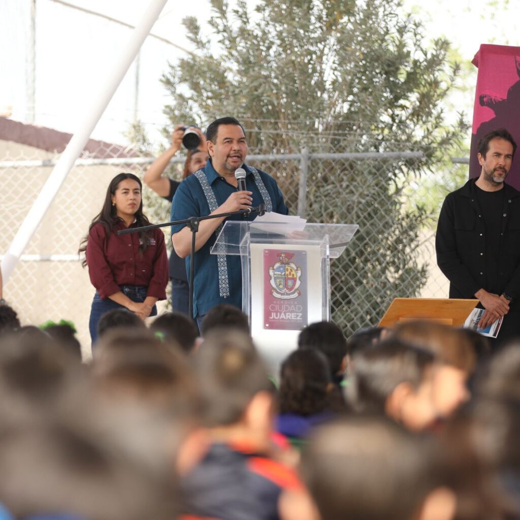 Martes 1 de Abril del 2025.- El Presidente Municipal, Cruz Pérez Cuéllar, hizo la entrega oficial de obras de rehabilitación en la Escuela Primaria Arcadio González Chávez. Estudiantes, padres de familia y maestros, destacaron el compromiso que tiene el alcalde juarense con la educación. El apoyo consistió en la entrega de rehabilitación de la cancha, porterías, resane en aulas, techos…