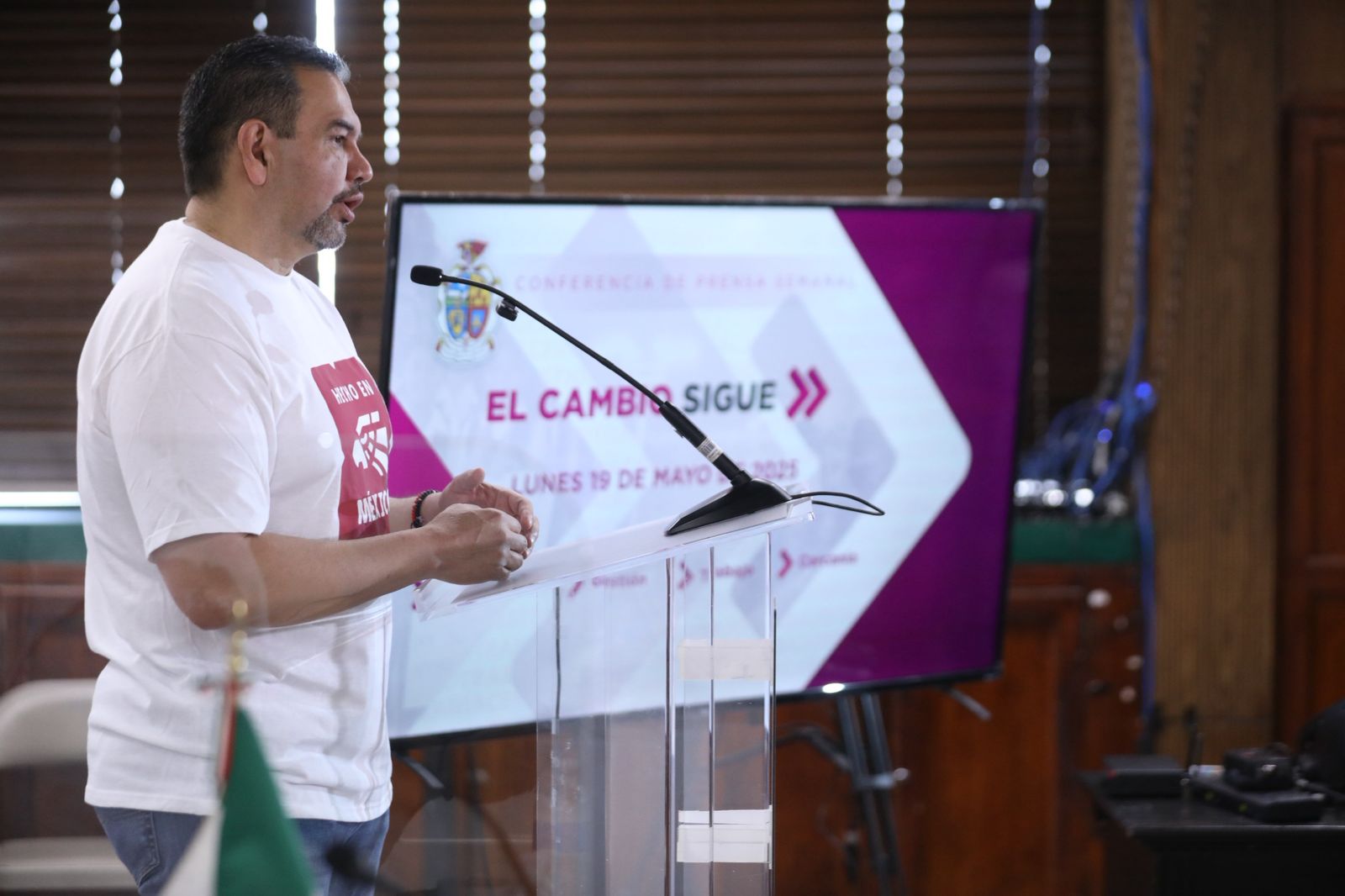 Lunes 19 de Mayo del 2025.- El Presidente Municipal, Cruz Pérez Cuéllar, señaló que están a la espera del acuerdo con el Gobierno Federal para la donación de un terreno destinado a la construcción de vivienda.