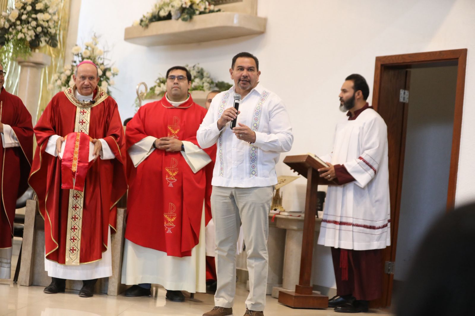 El Presidente Municipal, Cruz Pérez Cuéllar, en compañía de su esposa, Rubí Enríquez, acudieron a la iglesia donde se celebró una misa en honor a San Judas Tadeo.