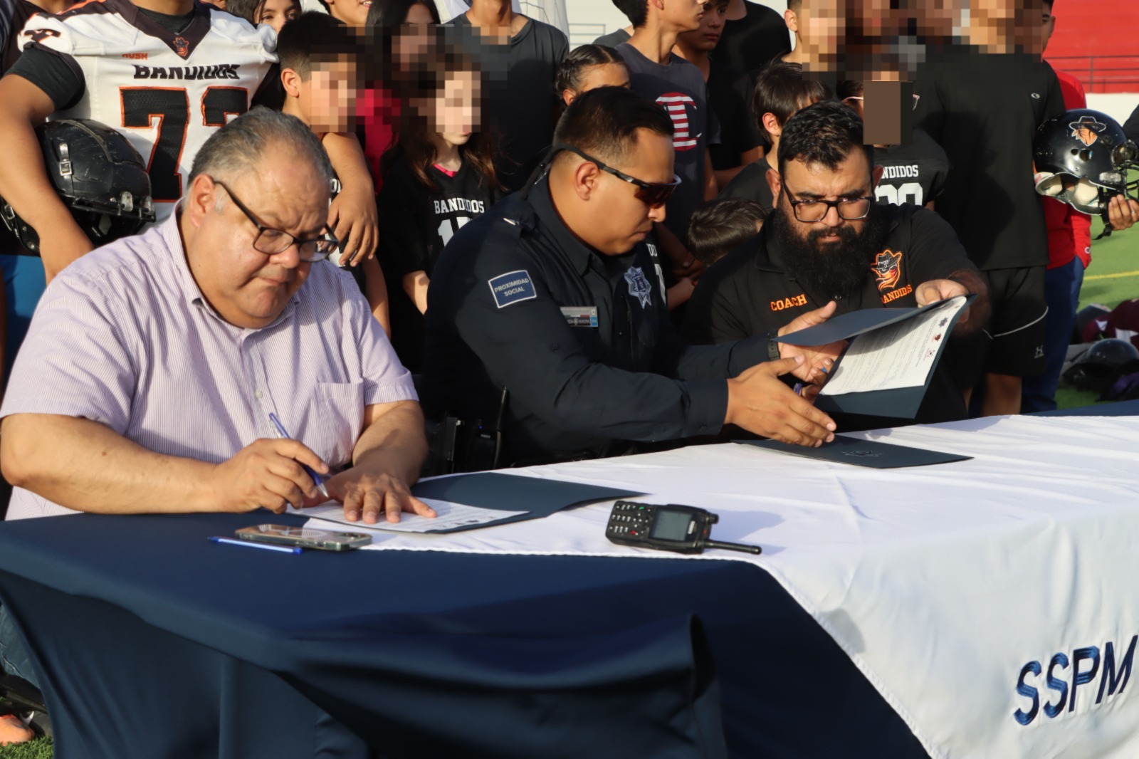 El acuerdo, signado por el Doctor Antonio Salas Martínez, titular de la Dirección de Prevención Social; el Head Coach Jesús Manuel Hernández Quintanilla, representante de Bandidos Football Club y el Policía II José Santiago Andrade Reza, Jefe Operativo de Prevención Social, establece un marco de trabajo coordinado que incluye talleres, actividades deportivas y eventos comunitarios dirigidos a fomentar valores como la disciplina, el respeto y la no violencia.