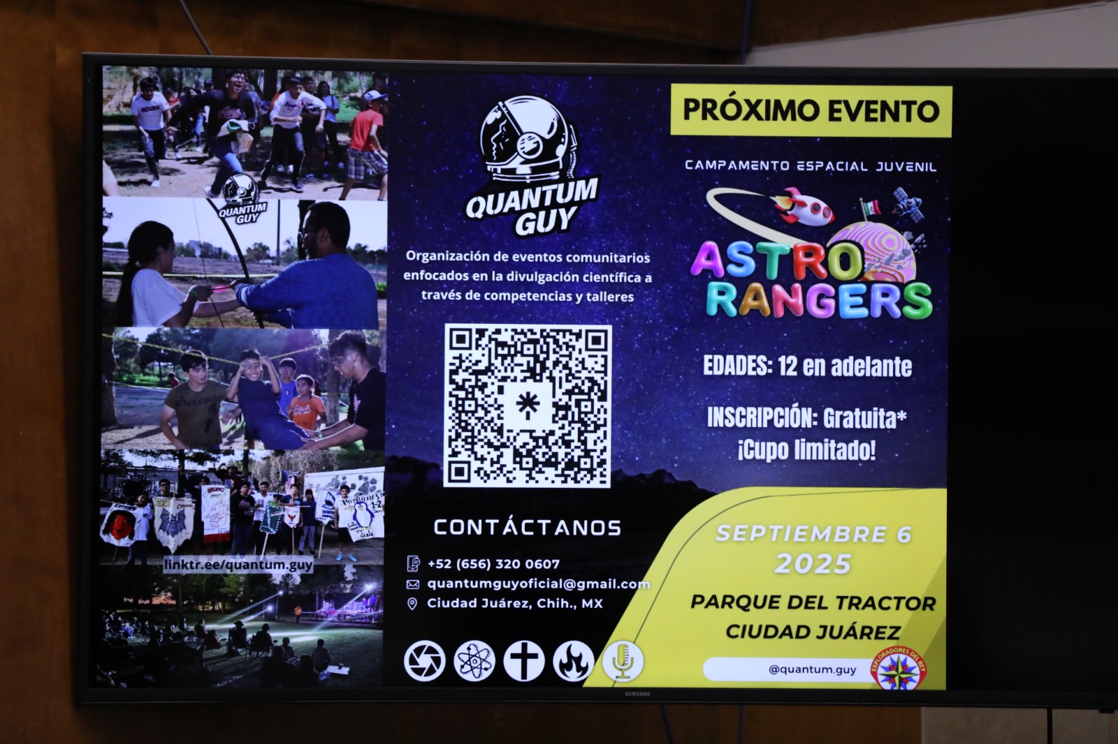 Jueves 19 de Junio del 2025.- El próximo sábado 6 de septiembre se va a realizar el Campamento Espacial Juvenil Astrorangers 2025, de 8:00 de la mañana a 10:00 de la noche, en el parquel El Chamizal, por lo que invitan a la ciudadanía a inscribirse.