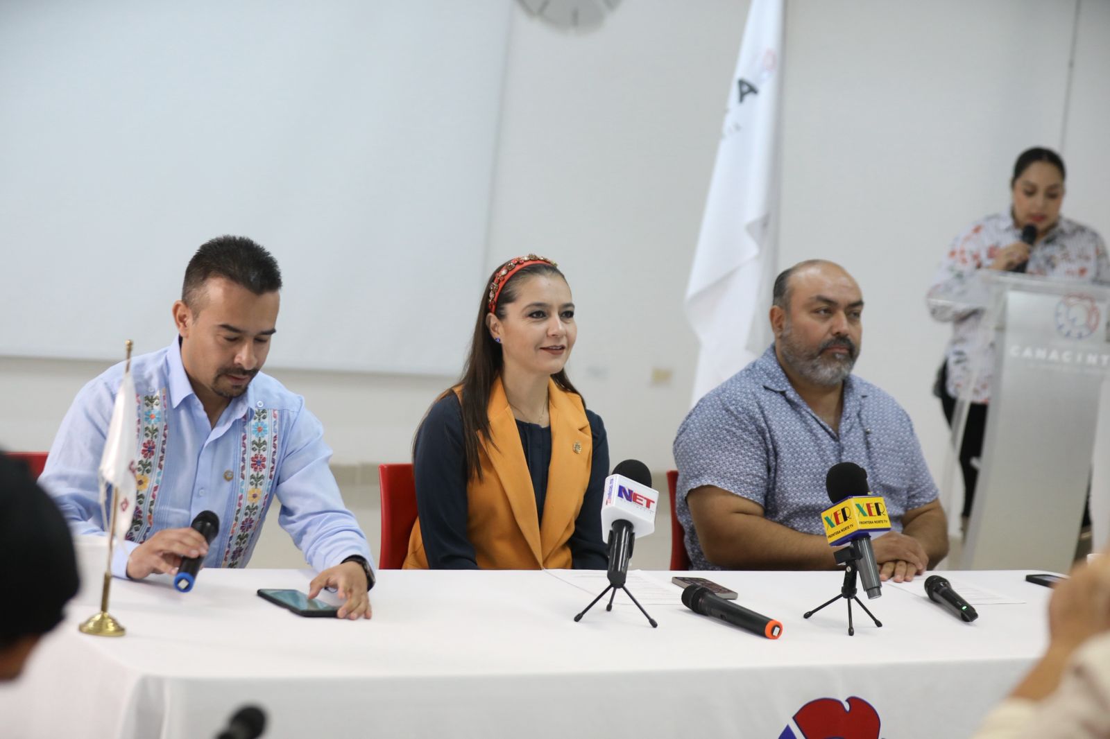 En la conferencia de prensa estuvo Tania Maldonado, titular de la Dirección General de Desarrollo Económico del Municipio.