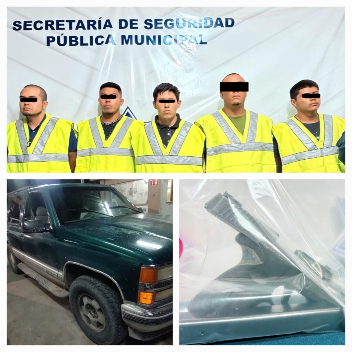 A 26 de junio de 2025.- Elementos de la Secretaría de Seguridad Pública Municipal adscritos a la estación de policía del Distrito Sur y de la Policía del Estado arrestaron a Cristian Antonio S. C., Eduardo Daniel H. M., Alejandro N. R., Luis Fernando J. V. y Luis Alfredo A. C., por su presunta responsabilidad en la comisión del delito de homicidio en grado de tentativa y delitos contra la ley federal de armas de fuego y explosivos, mismos que serán investigados por varios eventos de alto impacto ocurridos en la ciudad.