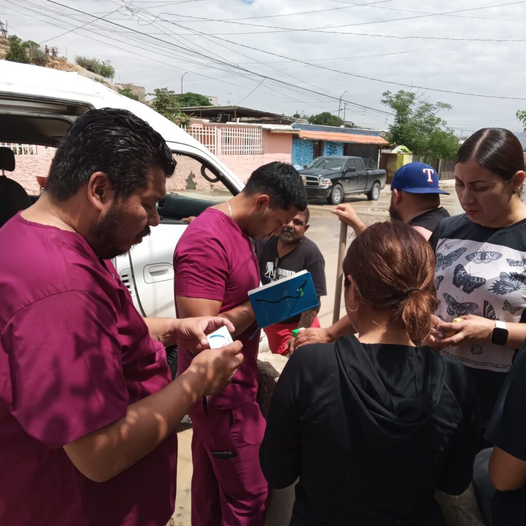 Viernes 27 de Junio del 2025.- Médicos y enfermeras de la Dirección de Salud Municipal visitan casa por casa en las colonias Fronteriza y Francisco Sarabia brindando consultas, otorgando medicamentos y proporcionando información para prevenir infecciones. Daphne Santana Fernández, titular de Salud Municipal, indicó que siguiendo las instrucciones del Presidente Municipal, Cruz Pérez Cuéllar, de atender a la población afectada…