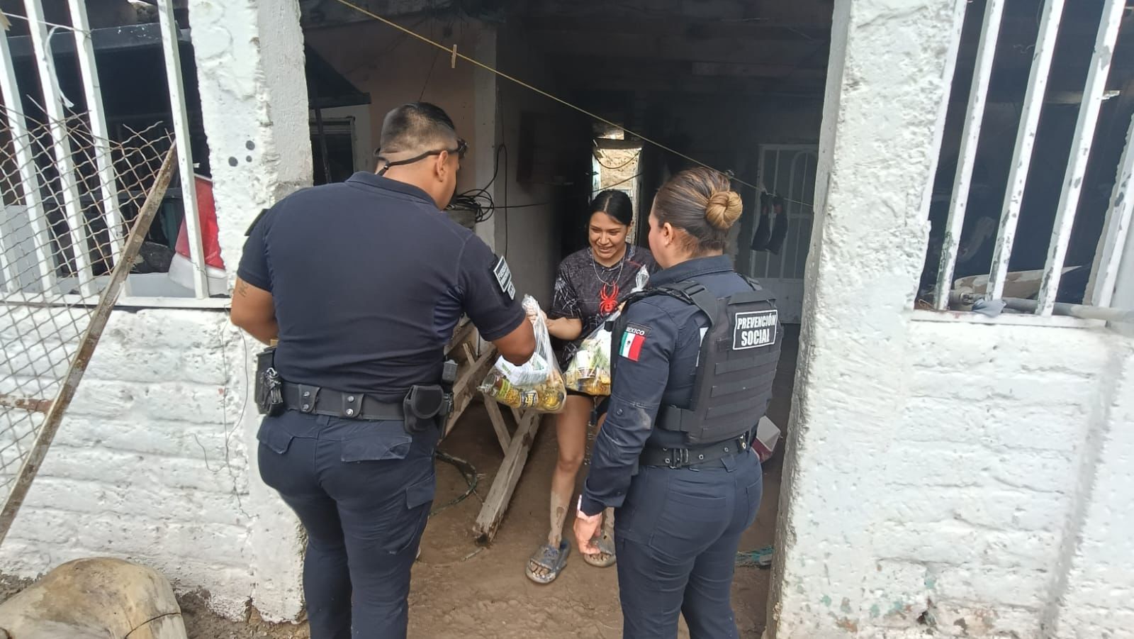 Viernes 27 de Junio del 2025.- Elementos de la Secretaría de Seguridad Pública Municipal pertenecientes a la Dirección de Prevención Social, acudieron a dar su apoyo a familias afectadas por la lluvia con entrega de despensas.