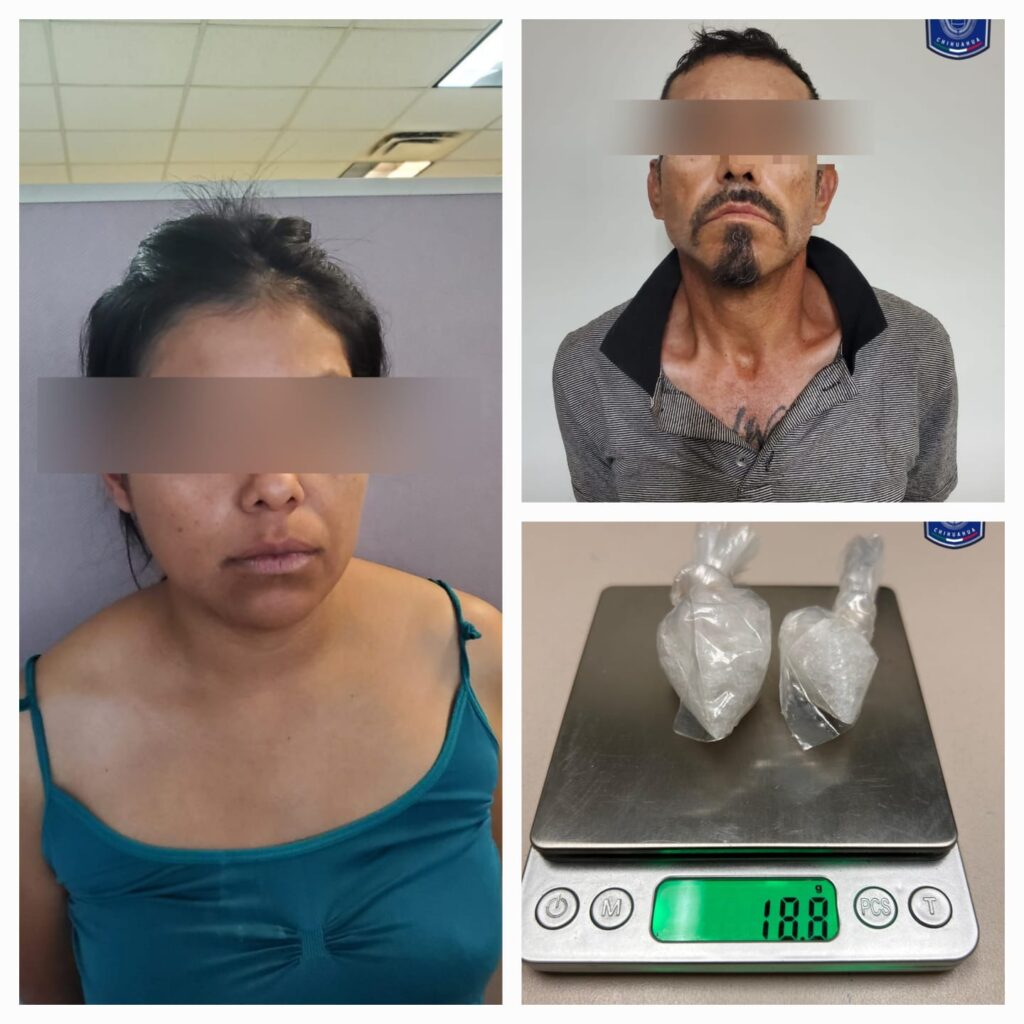 Ciudad Juárez, Chih., a 10 de junio de 2025.- Elementos de la Agencia Estatal de Investigación adscritos a la Fiscalía de Distrito Zona Norte, detuvieron en flagrancia a dos personas que se identificaron como Marisol M. R. y Eduardo A. L., por encontrarse en posesión de envoltorios que contenían la metanfetamina conocida como cristal. Los agentes investigadores del Centro de…