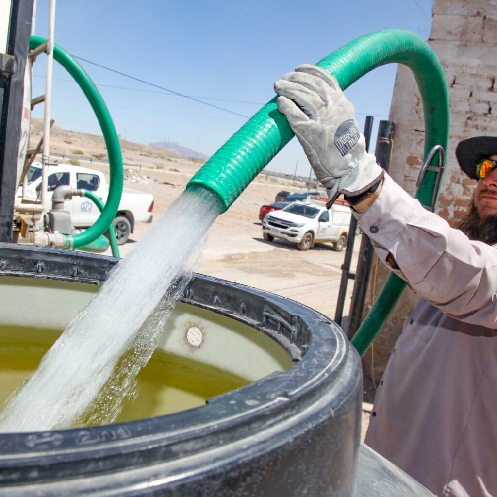Cd. Juárez, Chih., a 6 de junio de 2025.- A través de pipas, el Departamento de Agua Potable de la Junta de Agua y Saneamiento de Juárez, realizó este viernes la distribución del líquido en las colonias Barrio Nuevo, El Mármol y Safari, impactadas por los trabajos de reparación del Pozo 97-R, ubicado entre la calle Barranco Azul y el…