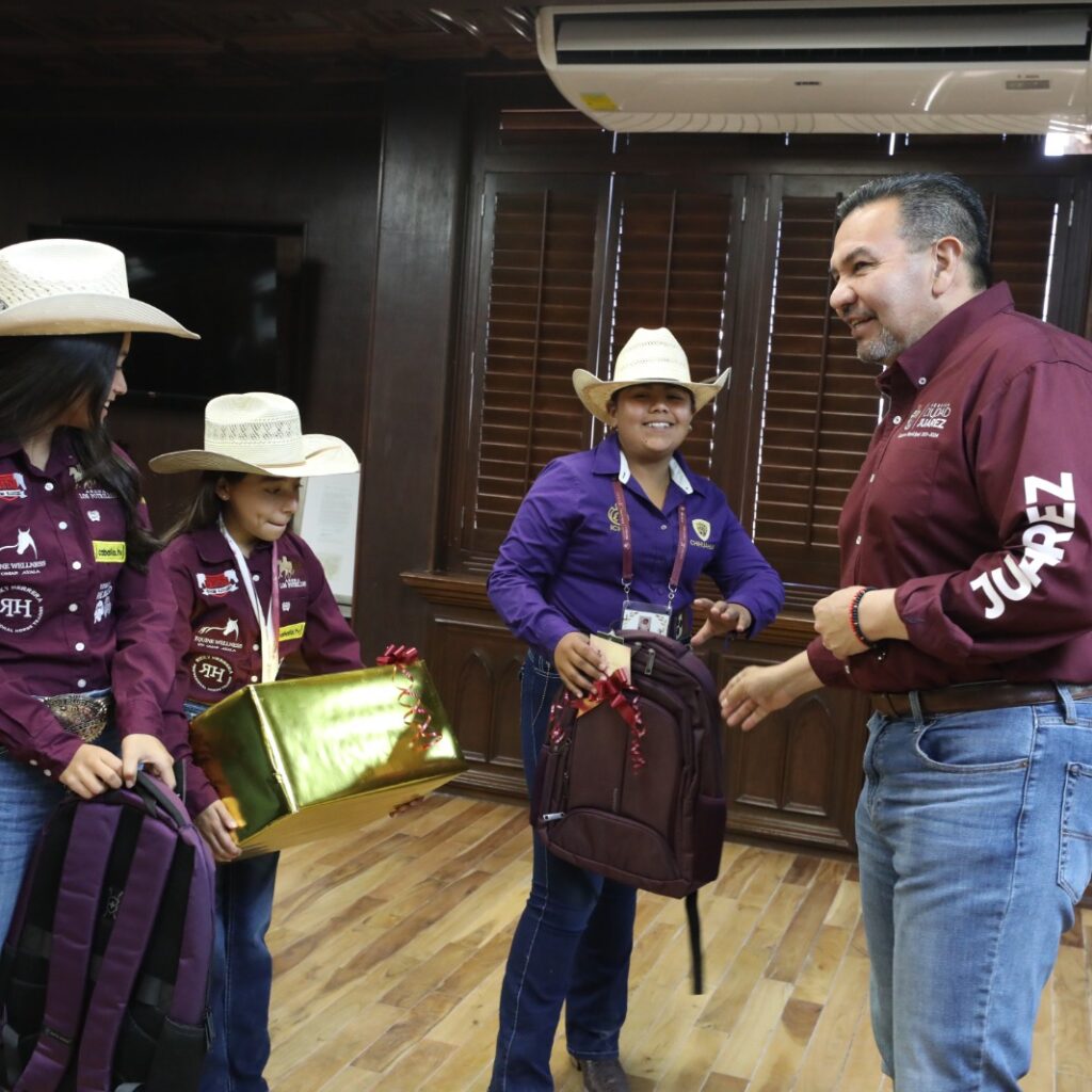 Viernes 6 de Junio del 2025.- El Alcalde Cruz Pérez Cuéllar felicitó a las niñas campeonas en los Juegos Conade de Rodeo, en los que representaron a Juárez y al estado de Chihuahua en una competencia que se realizó en el estado de Jalisco. José Luis Mayrán Hernández Moreno, entrenador de Ciudad Juárez, dijo que el objetivo de la visita…