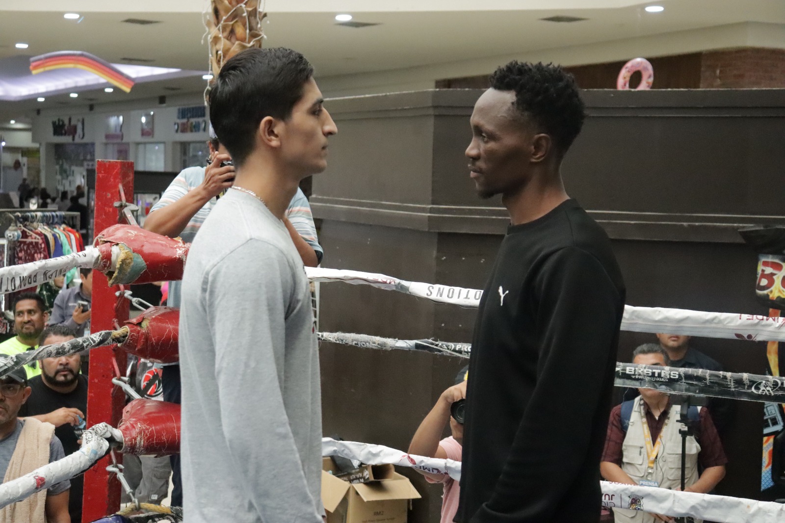 Decenas de juarenses se congregaron en el centro comercial Plaza de las Américas para ser testigos de lo que se verá en el ring el próximo viernes.