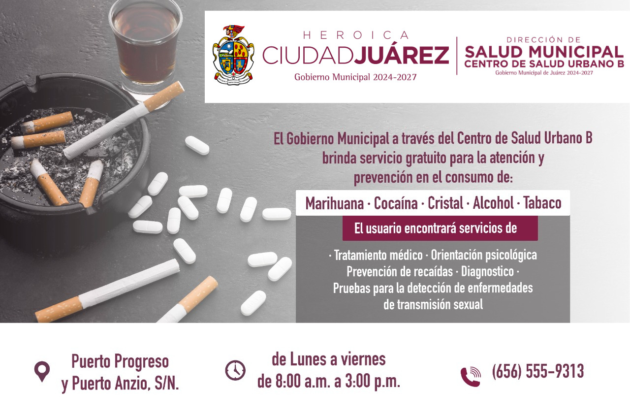 El centro brinda la intervención a conductas adictivas a través de la concientización, prevención, tratamiento e investigación para remediar la problemática que afecta a cientos de familias juarenses, por tal motivo se promueve la integración de los usuarios a la sociedad para que logren tener control de su vida sin la dependencia de sustancias; por ello es necesaria la asesoría psicológica para aprender a gestionar las emociones y evitar el consumo de tabaco u otras sustancias, explicó.