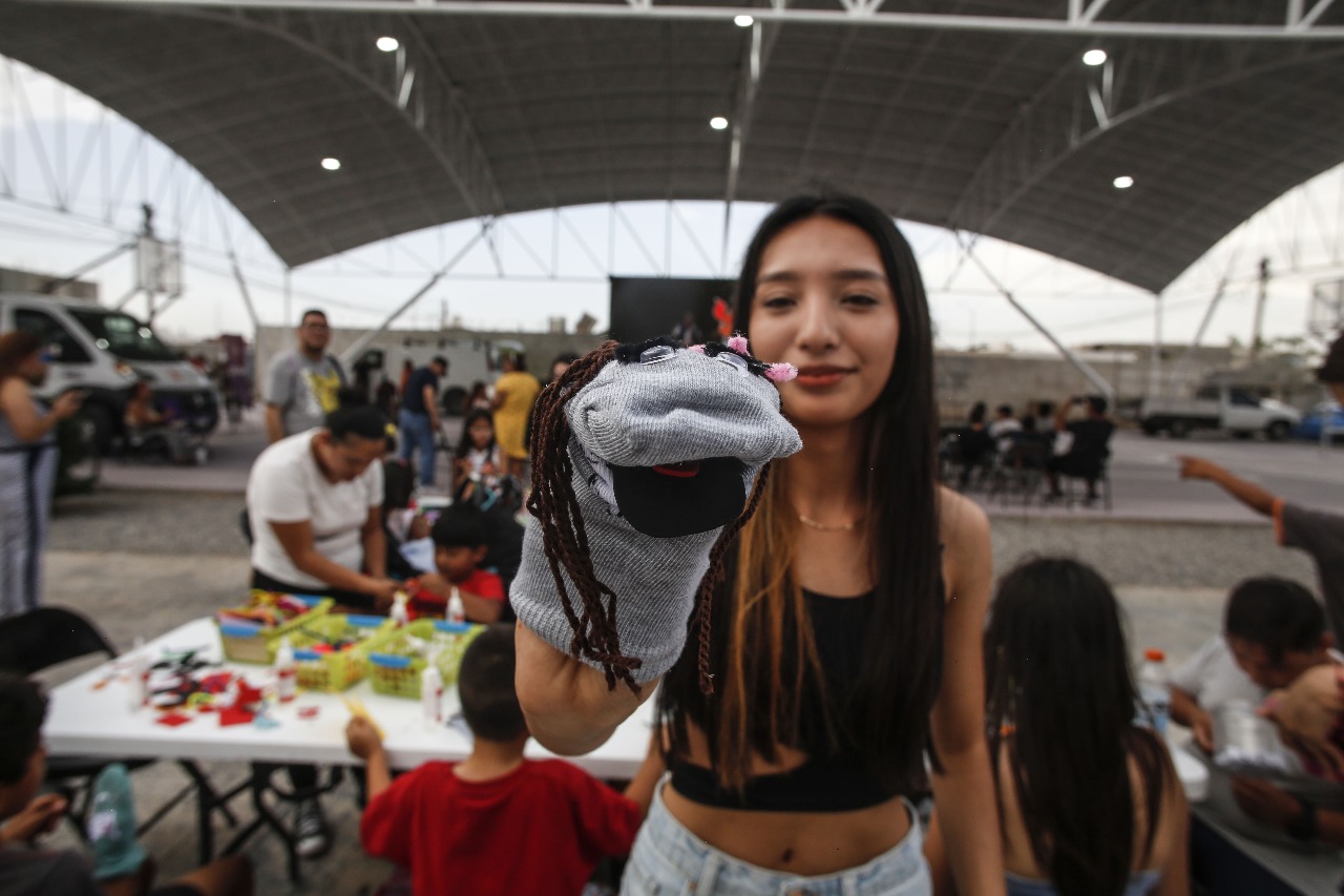 Además del espectáculo musical, niñas y niños participaron con entusiasmo en los talleres de alebrijes y títeres de calcetín, espacios diseñados para fomentar la creatividad y la expresión artística desde temprana edad.