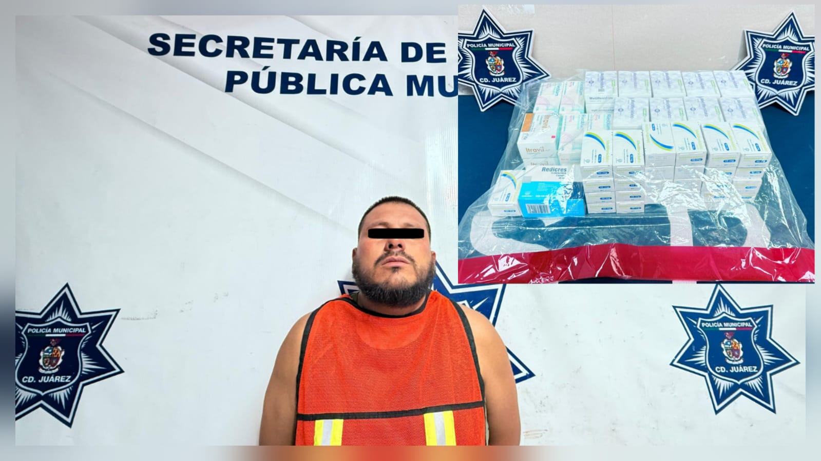 A 12 de junio de 2025.- Elementos de la Secretaría de Seguridad Pública Municipal adscrititos en la Estación de Policía del Distrito Oriente, capturaron a Jesús Adán E. E., por su presunta responsabilidad en la comisión de delitos contra la salud federal, incautándole una importante cantidad de pastillas psicotrópicas y estupefacientes.