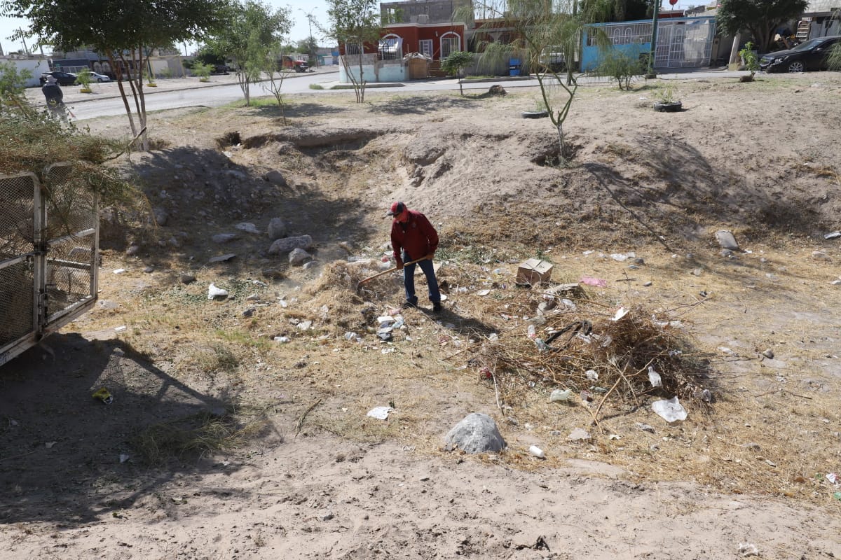 El director de la dependencia, Daniel Zamarrón Saldaña, informó que actualmente se cuenta con cuadrillas trabajando en diferentes sectores del fraccionamiento, realizando limpieza general.