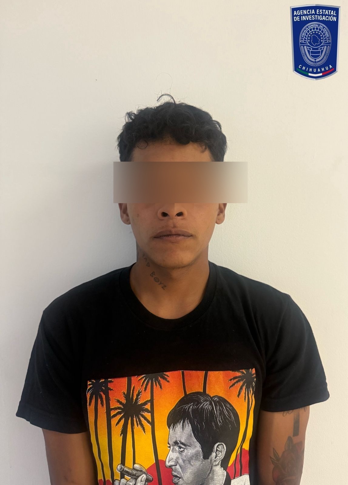Ciudad Juárez, Chih., a 16 de julio de 2025.- Elementos de la Agencia Estatal de Investigación (AEI), de la Fiscalía de Distrito Zona Norte, detuvieron en flagrancia a un masculino identificado como Alan Bryan S., por el delito de portación ilegal de arma de fuego.