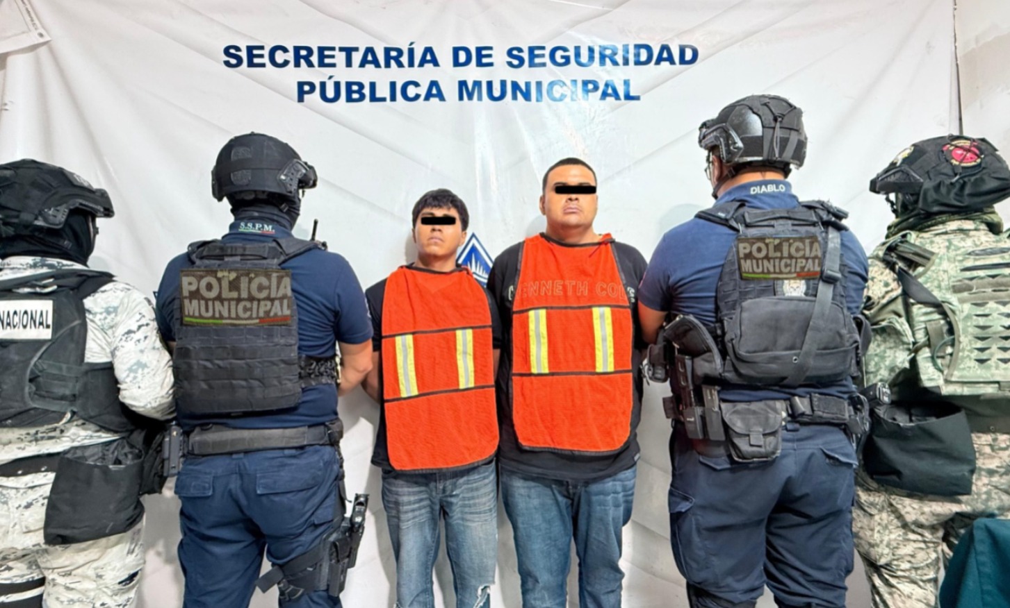 A 22 de julio de 2025-. Elementos de la Secretaría de Seguridad Pública Municipal (SSPM), en coordinación con elementos de la Guardia Nacional y personal de la Defensa Nacional, capturaron a Mario Alberto Q. G. y a Jorge Alejandro S., por su presunta responsabilidad en la comisión de delitos contra la ley federal de armas de fuego y explosivos.