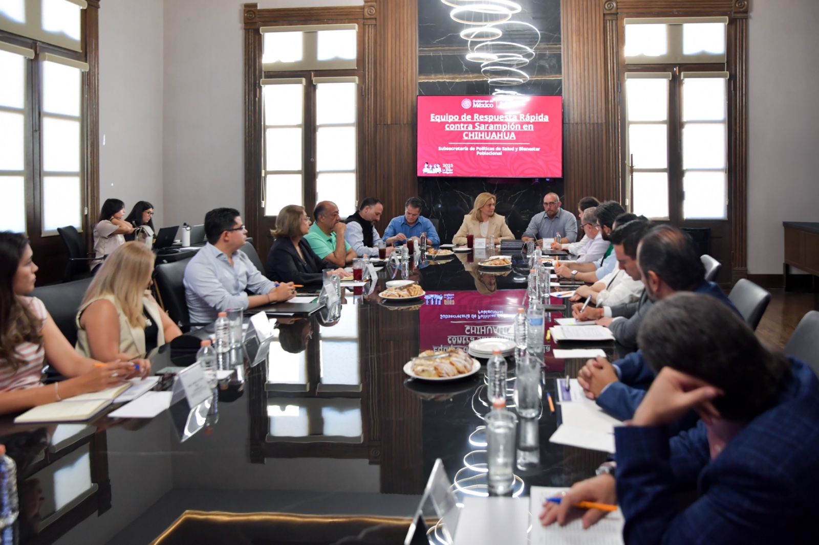 Maru Campos y autoridades del Gobierno Federal dan seguimiento a la estrategia de vacunación contra el sarampión