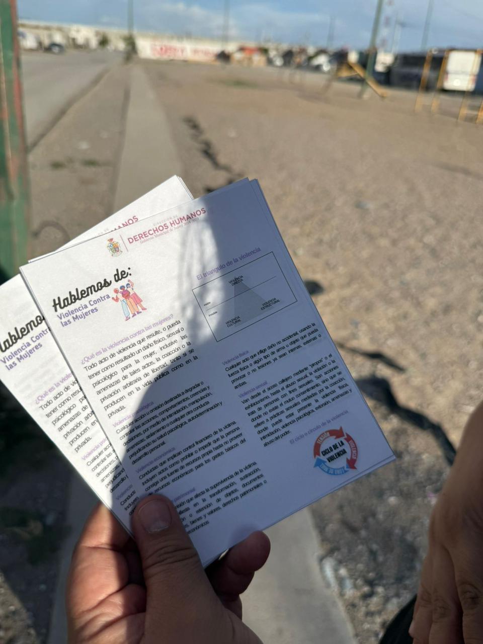 Viernes 25 de Julio del 2025.- Como parte de las acciones permanentes para promover una vida libre de violencia para las mujeres, personal de Derechos Humanos acudió a la colonia Valle de Allende, al suroriente de la ciudad, para compartir información preventiva a las vecinas del sector.