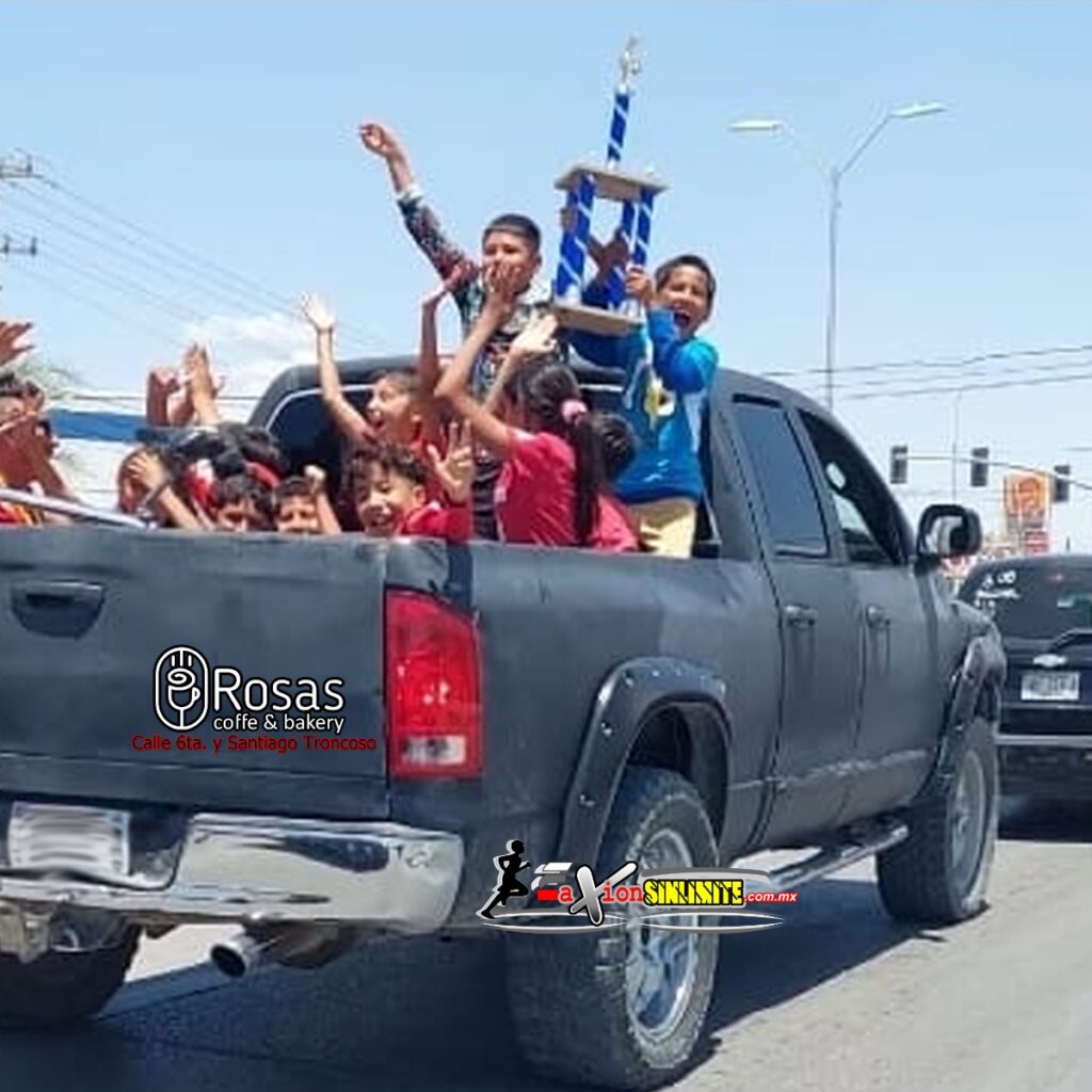 Read MoreNiños de Praderas del Sol celebran título de fútbol como guerreros en la caja de una troca que se pasea por la Panamericana.