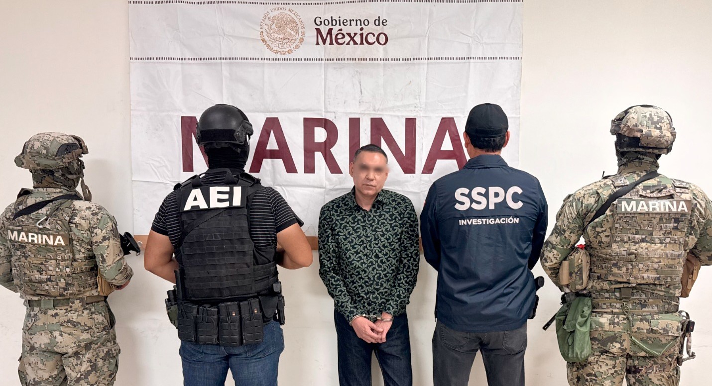 Chihuahua, Chih., a 01 de agosto de 2025.- En un operativo conjunto realizado la mañana de este viernes, elementos de la Fiscalía Especializada en Operaciones Estratégicas (FEOE), en coordinación con la Secretaría de Marina (SEMAR) y la Secretaría de Seguridad y Protección Ciudadana (SSPC), lograron detener a un sujeto identificado como Jaime Huereca y/o Carlos Miramontes, quien era buscado por autoridades estadounidenses.