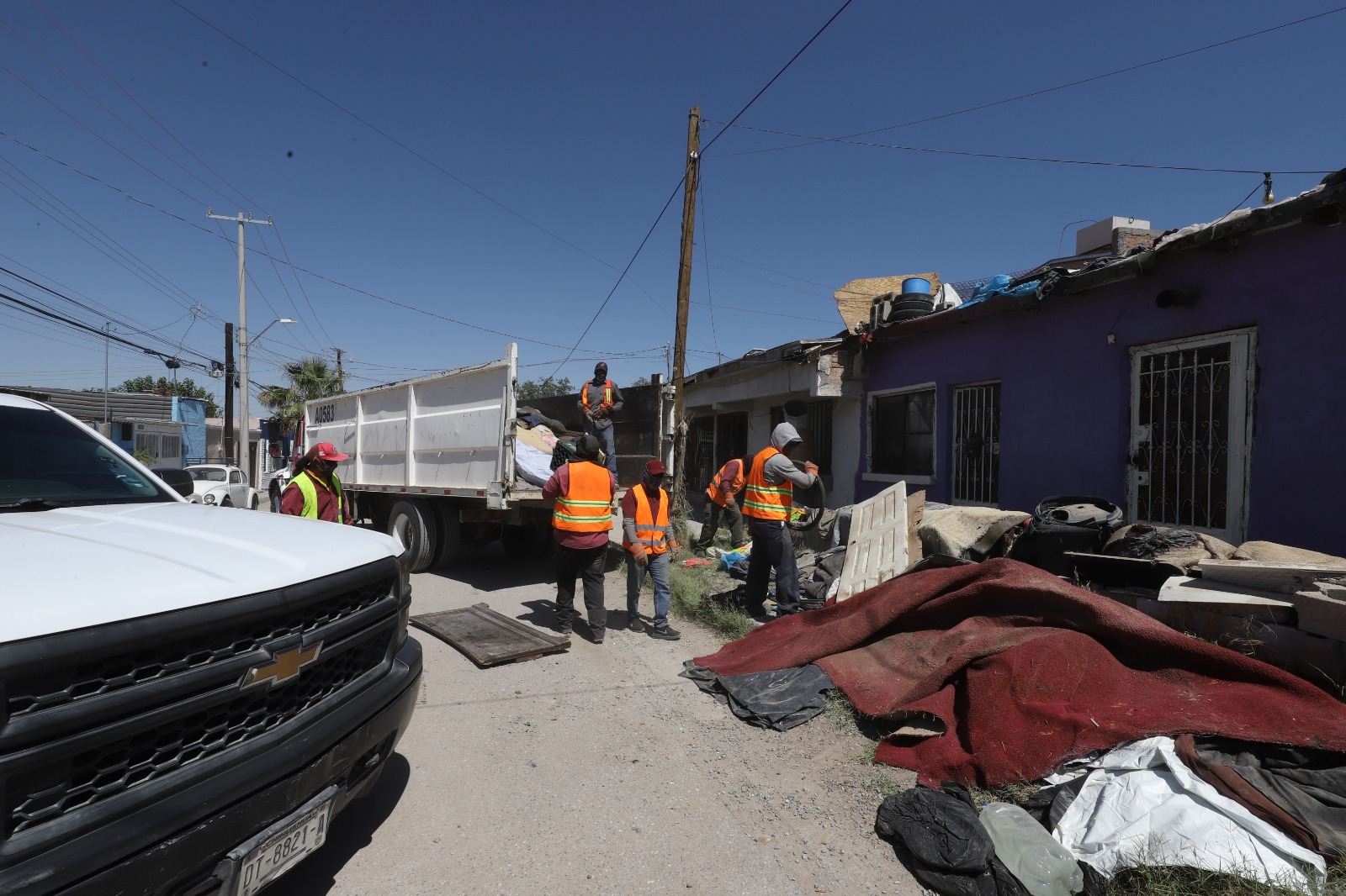 Jueves 7 de Agosto del 2025.- En un segundo operativo del programa permanente de Reordenamiento Urbano efectuado este día, personal del Municipio retiró muebles, llantas y basura que se encontraban en la banqueta de una vivienda entre las calles Simón Bolívar y Polonia, en la colonia Industrial.