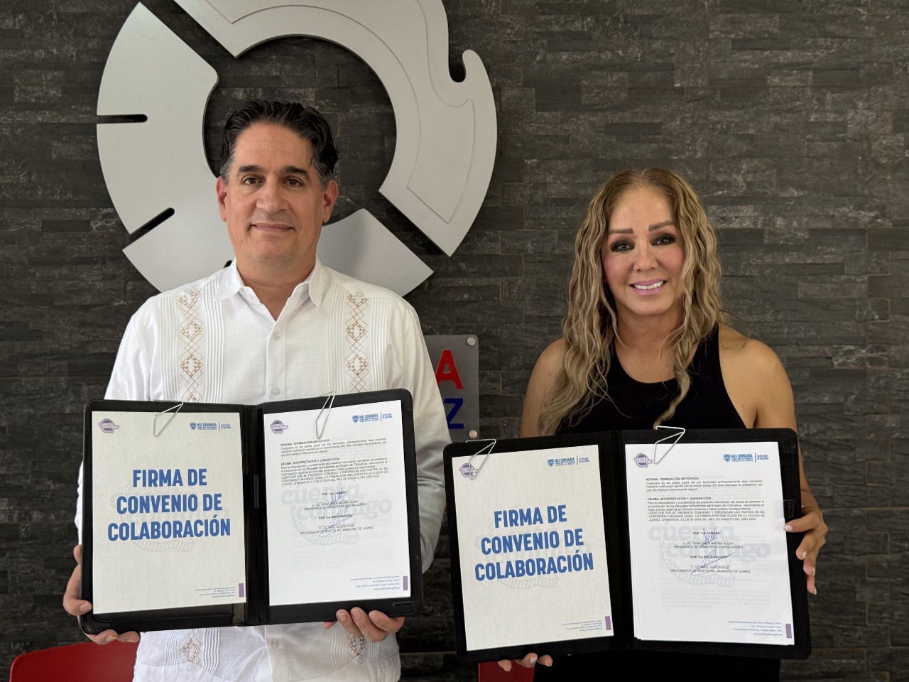 Con el objetivo de brindar atención técnica especializada al sector industrial en materia de trámites, pagos, aclaraciones y asesorías fiscales, el recaudador de rentas de Juárez, Raúl García y Rosa Isela Molina, presidenta de Canacintra Ciudad Juárez, firmaron un convenio de colaboración entre ambos organismos.