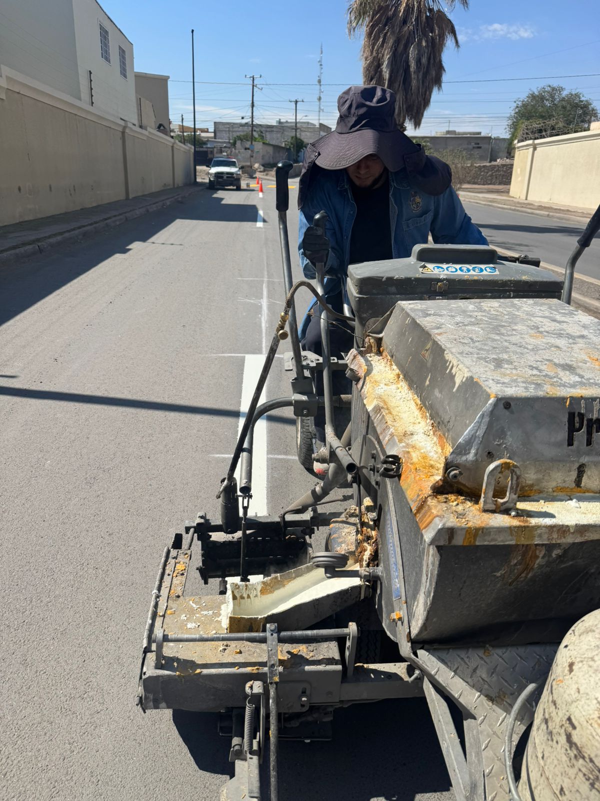Jueves 14 de Agosto del 2025.- La Coordinación General de Seguridad Vial, por medio del área de Control de Tráfico, realizó trabajos de aplicación de pintura sobre la calle Santa Bárbara, en el tramo que va del bulevar Zaragoza hasta la calle Vía Láctea.