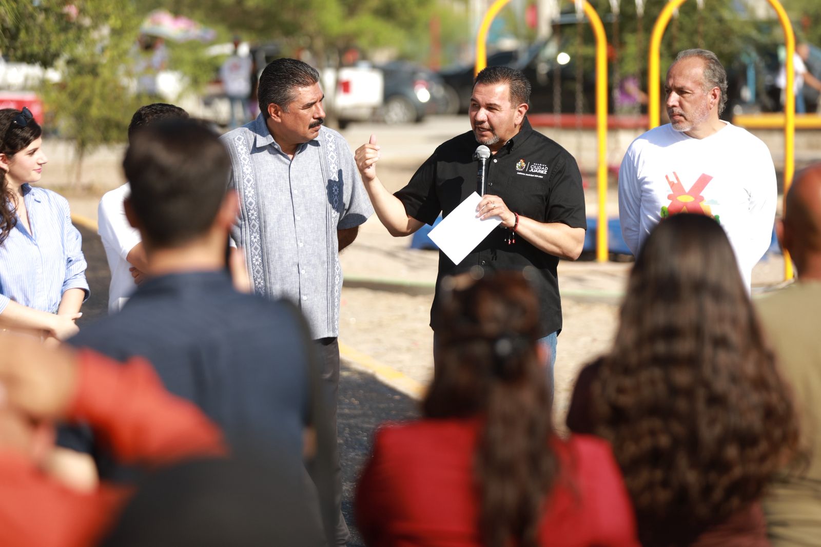 Jueves 14 de Agosto del 2025.- Autoridades municipales, representantes empresariales y vecinos participaron en la presentación del proyecto “Parque en un día”, una iniciativa que forma parte del programa Construyendo tu parque, de Fundación Bepensa, realizada en alianza con Fundación Cummins, el Club Rotario Juárez Ejecutivo y el Ayuntamiento de Juárez.