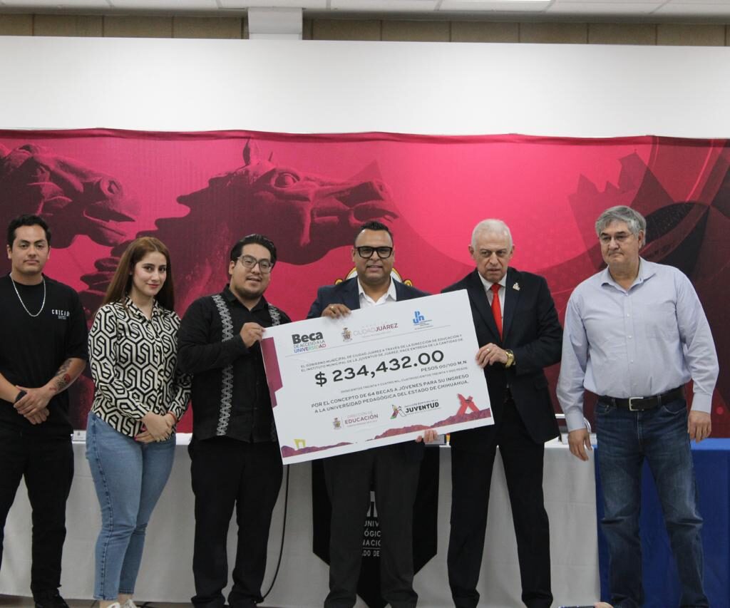 Lunes 18 de Agosto del 2025.- El Gobierno Municipal a través del Instituto Municipal de la Juventud (IMJ) entregó un cheque simbólico a la Universidad Pedagógica Nacional del Estado de Chihuahua, Unidad Juárez (UPNECH), por la cantidad de 234 mil 432.00 pesos, para los estudiantes beneficiarios del programa Becas de Acceso a la Universidad. «No hay otro municipio en todo…