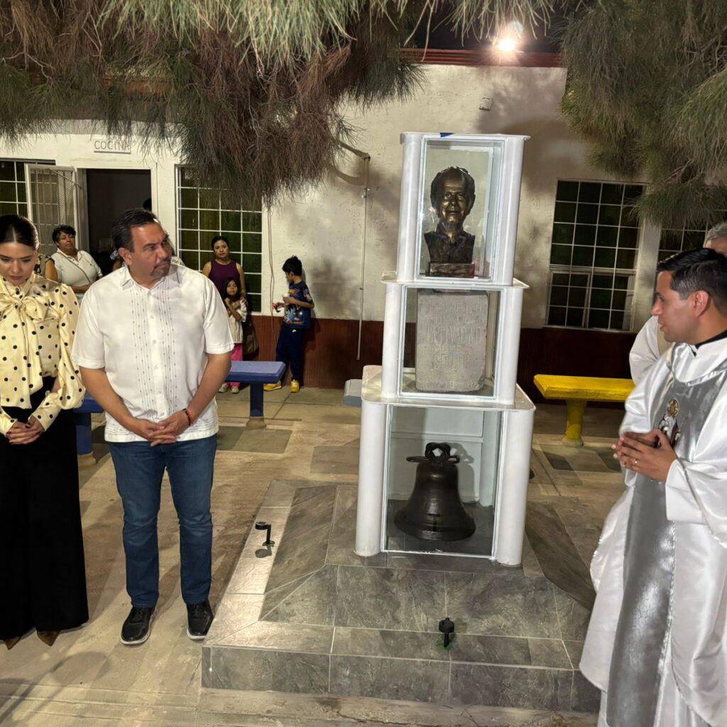 Martes 19 de Agosto del 2025.- El Presidente Municipal, Cruz Pérez Cuéllar y su esposa Rubí Enríquez, acudieron a la develación del busto en memoria del primer párroco de la Parroquia Natividad del Señor, Monseñor Lucero. Previo a la inauguración, el alcalde participó en la misa que se ofició en el templo celebrada por el sacerdote Víctor Ortega. El alcalde…