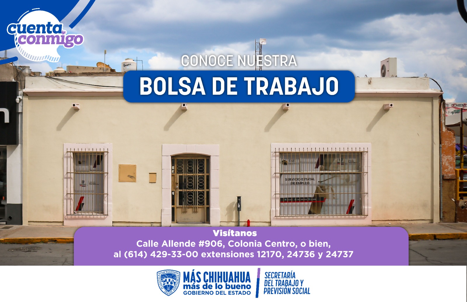 Se invita a las y los interesados a acudir a las instalaciones de la bolsa de trabajo, ubicadas en calle Allende 906, colonia Centro, o comunicarse al teléfono (614) 429-33-00, extensiones 12170, 24736 y 24737. Los servicios que brinda la STPS son gratuitos.
