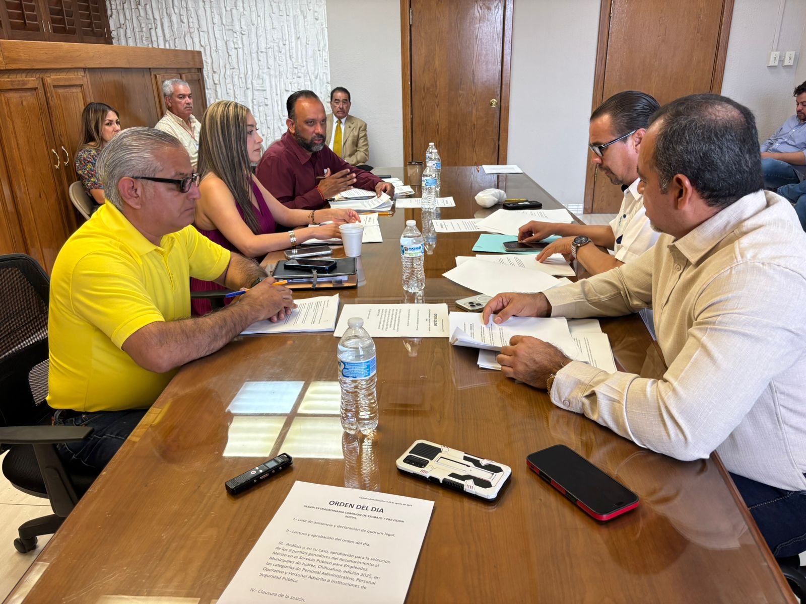 Martes 26 de Agosto del 2025.- Regidores de la Comisión Edilicia del Trabajo y Previsión Social se reunieron con el secretario del Ayuntamiento, Héctor Rafael Ortiz Orpinel; la directora de Recursos Humanos, María Cristina Alcántar Duarte y personal del Sindicato para elegir a los nueve ganadores del Reconocimiento al Mérito en el Servicio Público para Empleados Municipales de Juárez.