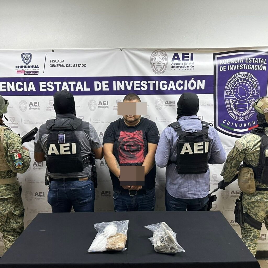 Ciudad Juárez, Chih., a 22 agosto de 2025.- Elementos de la Agencia Estatal de Investigación, adscritos a al Centro de Operaciones Estratégicas (COE) de la Fiscalía de Distrito Zona Norte, en coordinación con la Guardia Nacional y el Ejército Mexicano, detuvieron a un masculino identificado como Julio René D. S., por delitos contra la salud, en Ciudad Juárez. El arresto…