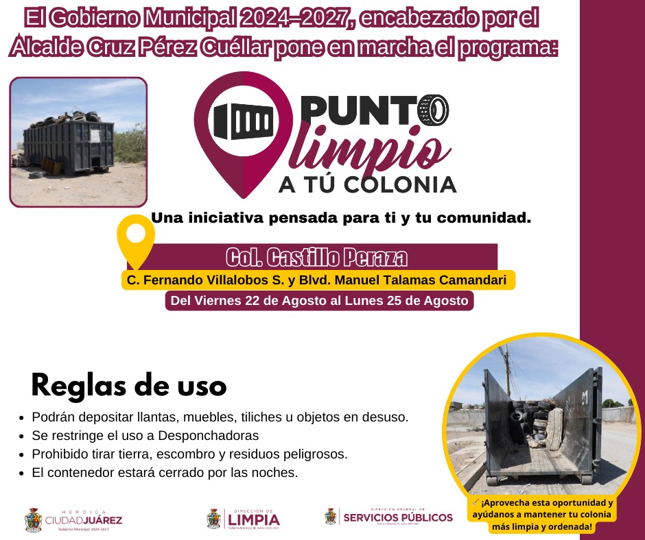 Viernes 22 de Agosto del 2025.- Con el propósito de fortalecer las acciones para el cuidado del medio ambiente y ofrecer a la ciudadanía espacios adecuados para la disposición de residuos sólidos, la Dirección de Limpia de la Dirección General de Servicios Públicos, instaló cuatro nuevos Puntos Limpios en distintos sectores de la ciudad. Los nuevos espacios quedaron ubicados en…