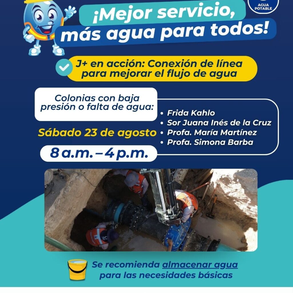 Mañana sábado 23 de agosto, la Junta de Agua y Saneamiento de Juárez realizará trabajos de instalación de desfogue en la colonia Frida Kahlo, con el objetivo de evitar la acumulación de agua con arena y mejorar la calidad del servicio en el sector. Las labores se realizarán en un horario de 8:00 de la mañana a 4:00 de la…