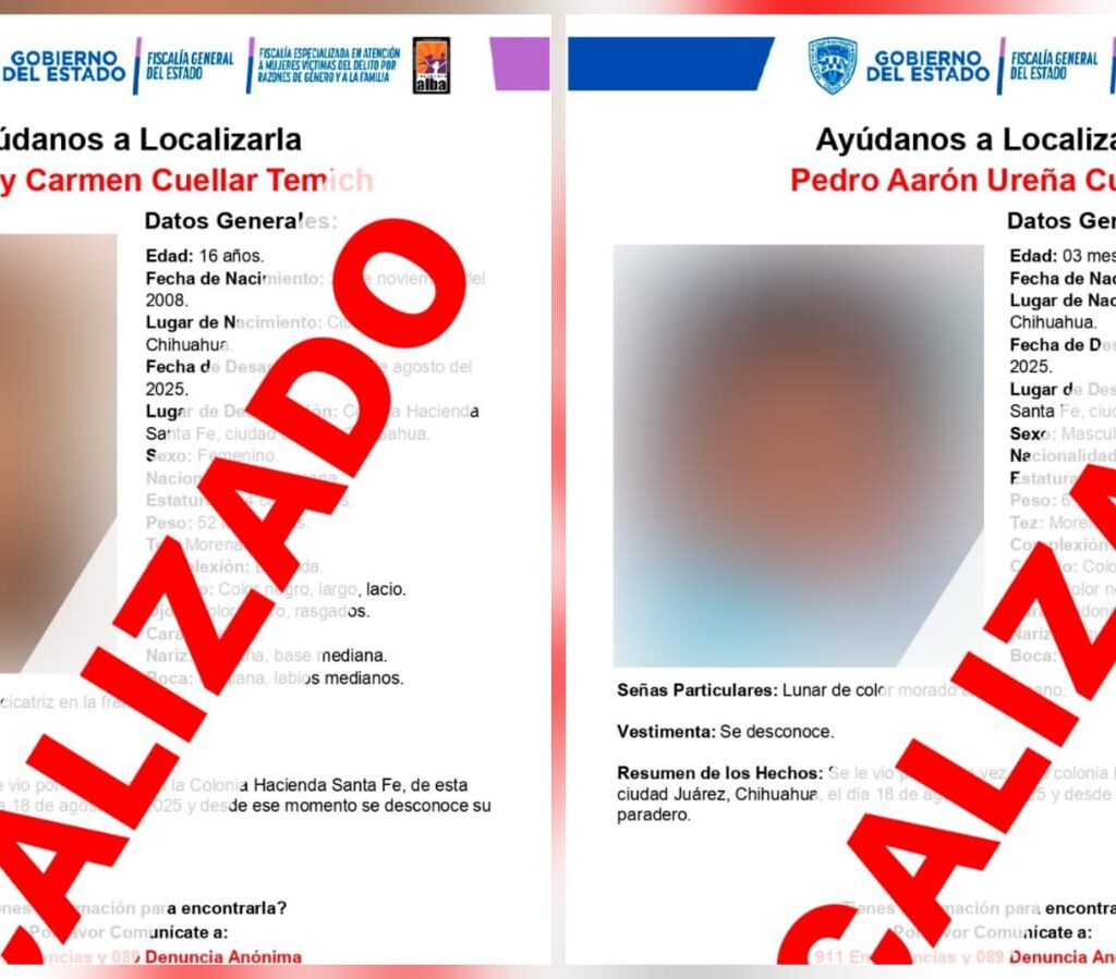 Ciudad Juárez, Chih., a 21 agosto de 2025.- Elementos de la Agencia Estatal de Investigación, adscritos a la Fiscalía Especializada en Atención a Mujeres Víctimas del Delito por Razones de Género y a la Familia en la Zona Norte, localizaron sanos y salvos a la adolescente identificadas con las iniciales K. C. C. T., de 16 años de edad, así…