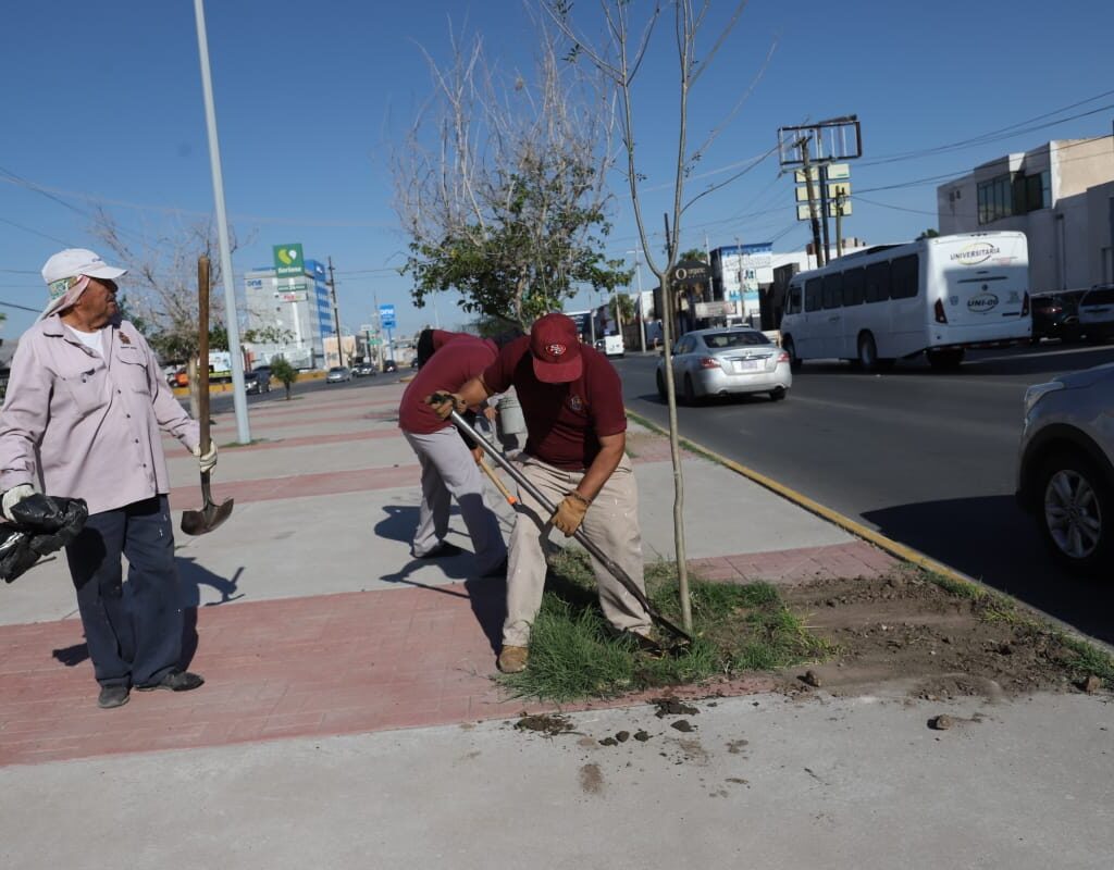 Miércoles 20 de Agosto del 2025.- Personal de la Dirección de Parques y Jardines continúa plantando árboles en el camellón central de la avenida Ejército Nacional, entre Adolfo López Mateos hacia el oriente, casi llegando a la Valentín Fuentes, con un total de 118. Daniel Zamarrón Saldaña, titular de la dependencia, señaló que hoy se plantaron 50, en coordinación con…