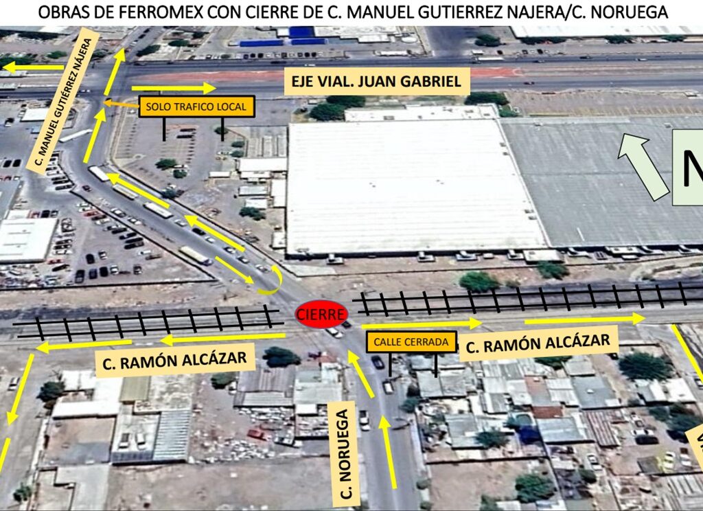 Lunes 18 de Agosto del 2025.- La Coordinación General de Seguridad Vial informa a la ciudadanía que, a partir del próximo jueves 21 de agosto, la calle Noruega permanecerá cerrada en ambos sentidos, de sur a norte y de norte a sur, en su cruce con las vías del tren. Dicho cierre tendrá una duración aproximada de dos semanas a…