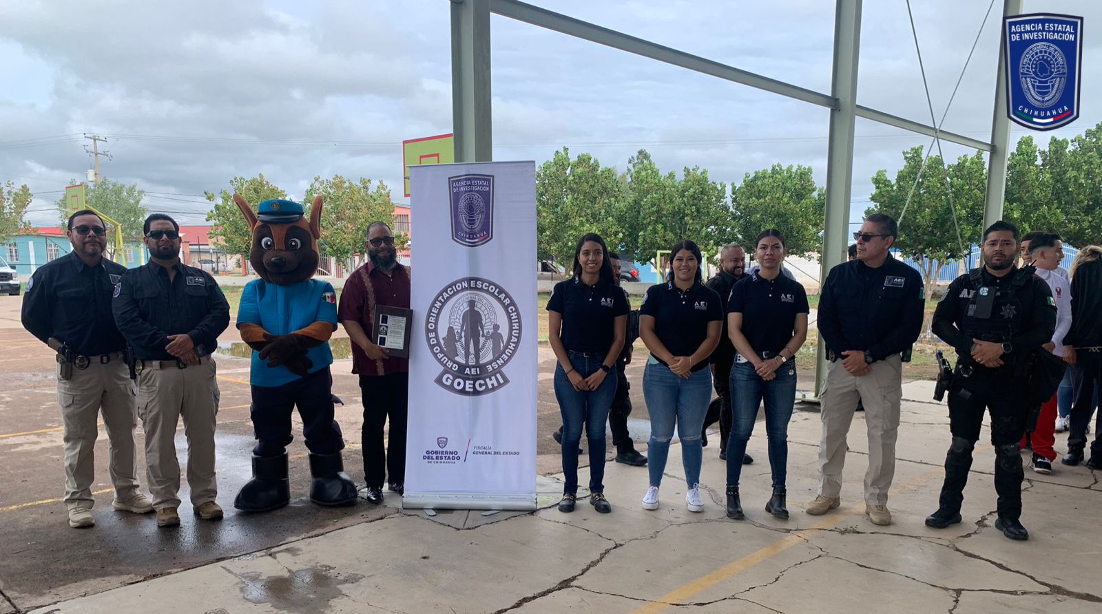 Ciudad Juárez, Chih., a 01 de septiembre de 2025.- Como parte de los trabajos para combatir y prevenir la comisión de delitos desde todos los frentes, así como evitar situaciones de riesgo a niños, niñas y adolescentes, el Grupo de Orientación Escolar Chihuahuense (GOECHI), de la Agencia Estatal de Investigación, se presentó en el arranque del ciclo escolar 2025-2026, en el municipio de Nuevo Casas Grandes.