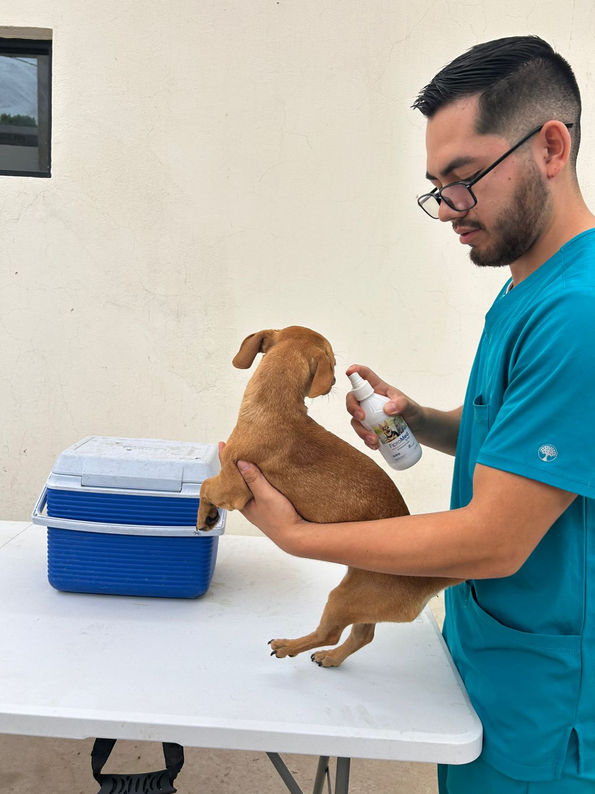 Arredondo Salinas dijo que el producto contra garrapata es en spray y se aplica por el área médica de DABA, ya que se suministra según la talla y peso de la mascota, así como en áreas en específico.
